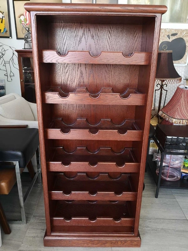 Enhance your home décor with this charming, used wooden wine rack, perfect for storing and displaying your favourite bottles. This sturdy rack holds multiple bottles and adds a touch of rustic elegance to any room. The wood has some minor signs of wear, but overall, it remains in good condition, ready to showcase your wine collection. Key Features: * Material: Solid Wood * Capacity: Holds multiple wine bottles * Style: Rustic, traditional no damages, sturdy If the ad is up, it's still available! PU near chinook mall area