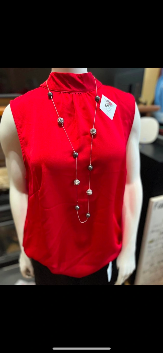 Red sleeveless blouse