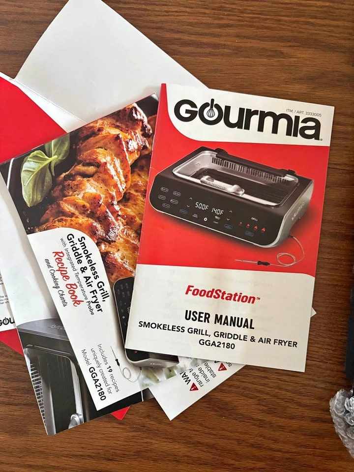 Gourmia airfryer + grill station. Like new, very well cleaned and cared for. LIGHTLY USED. Griddle and grill pan were never used. Neither was the probe.