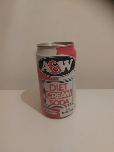 Rare Vintage A&W Diet Cream Soda Can (Made in Canada). This collectible advertising soda merchandise is a must-have for any A&W or soda enthusiast. The pink color of the can is perfect for adding a pop of fun to any collection.