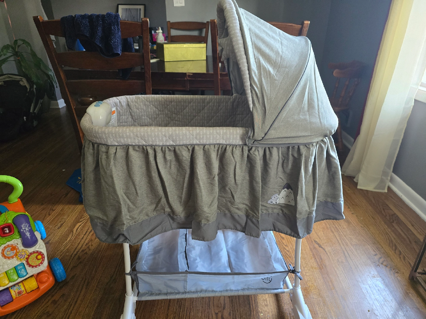 Gently used bassinet, perfect for your little one. It features a neutral grey colour that will fit any nursery decor. It also has a storage area underneath. Offers Accepted. No lowballs please. Prompt pick up preferred.