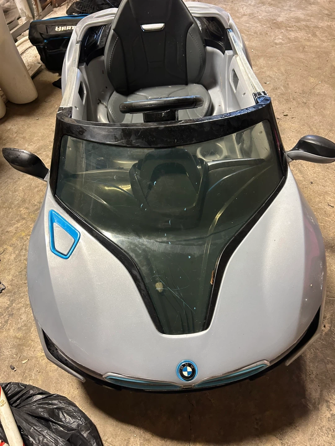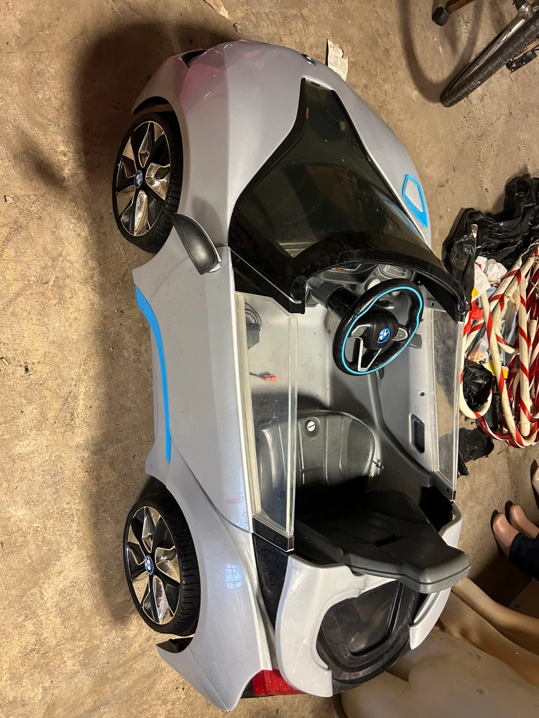 Selling a BMW i8 ride-on car for kids! It's in good condition and ready for a new driver. This stylish ride-on car will surely bring joy to your little one. It includes a charger And battery so they can keep cruising around!