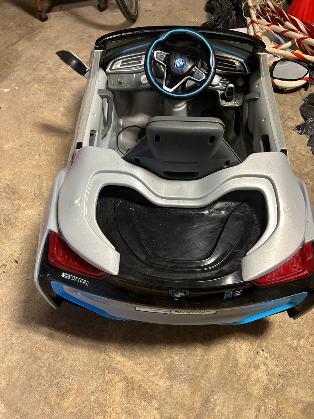 Selling a BMW i8 ride-on car for kids! It's in good condition and ready for a new driver. This stylish ride-on car will surely bring joy to your little one. It includes a charger And battery so they can keep cruising around!