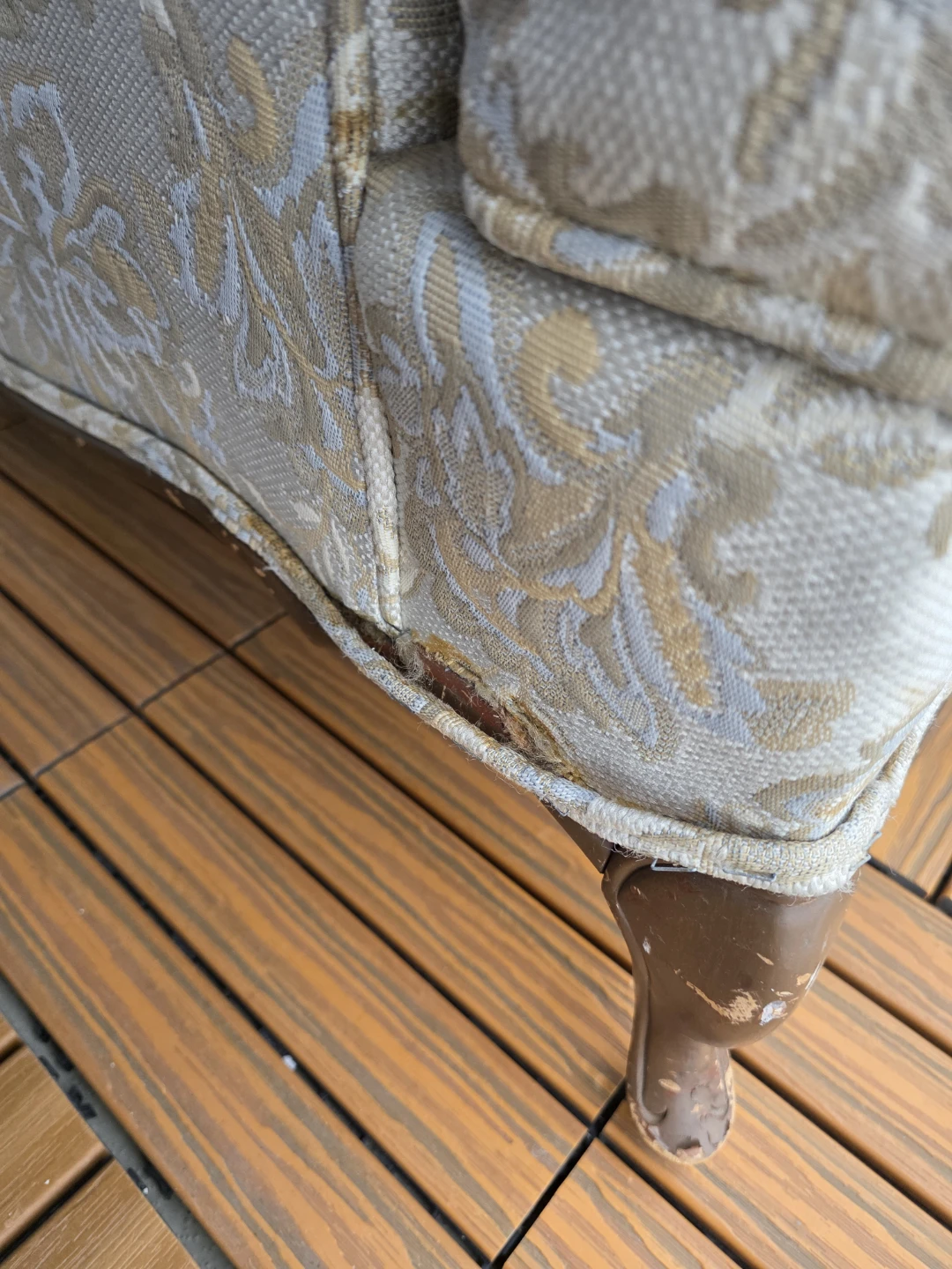 Bring timeless charm into your space with this beautifully crafted vintage armchair. Featuring an elegant floral damask pattern in soft beige and gold tones, this chair blends classic comfort with a touch of sophistication. The curved wooden legs and rolled arms add a refined touch, while the plush cushioning ensures a cozy seating experience. ***PLEASE CHECK ALL PICTURES*** πŸͺ‘ Details: β€’ Comfortable and sturdy design β€’ Elegant floral upholstery in neutral tones β€’ Solid wood carved legs β€’ Perfect for living room, reading nook, or bedroom dΓ©cor ✨ In good vintage condition with a stylish, timeless appeal.