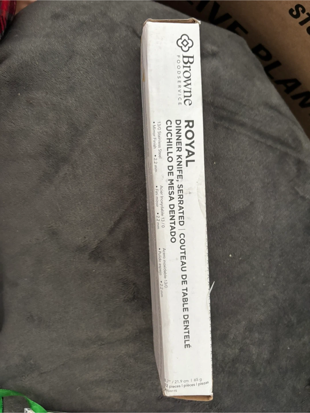 NIB great for holiday gatherings! Selling a Restaurant quality Browne Foodservice Royal dinner knife set! This set includes 12 serrated dinner knives, each 8.7" / 21.9 cm in length. They're made of 13/0 stainless steel with a mirror finish and 2.2 mm thickness. Great for everyday use or special occasions! Restaurant grade last lifetime regular $40 box only $10 3 boxes available 2 sets in plastic not box