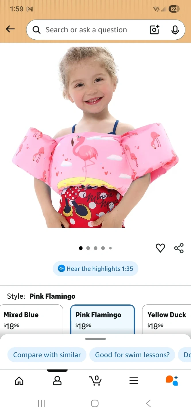 Kids Pink Flamingo Arm Floaties Swim Vest