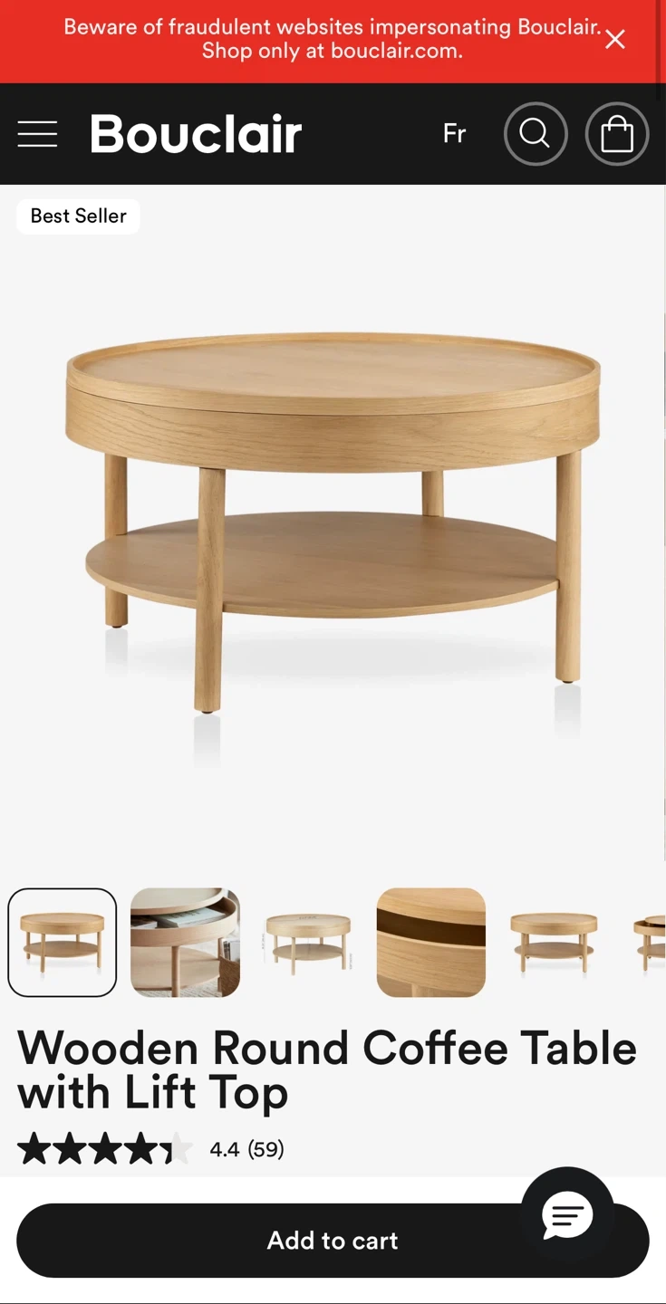 Bouclair found coffee table with lift top