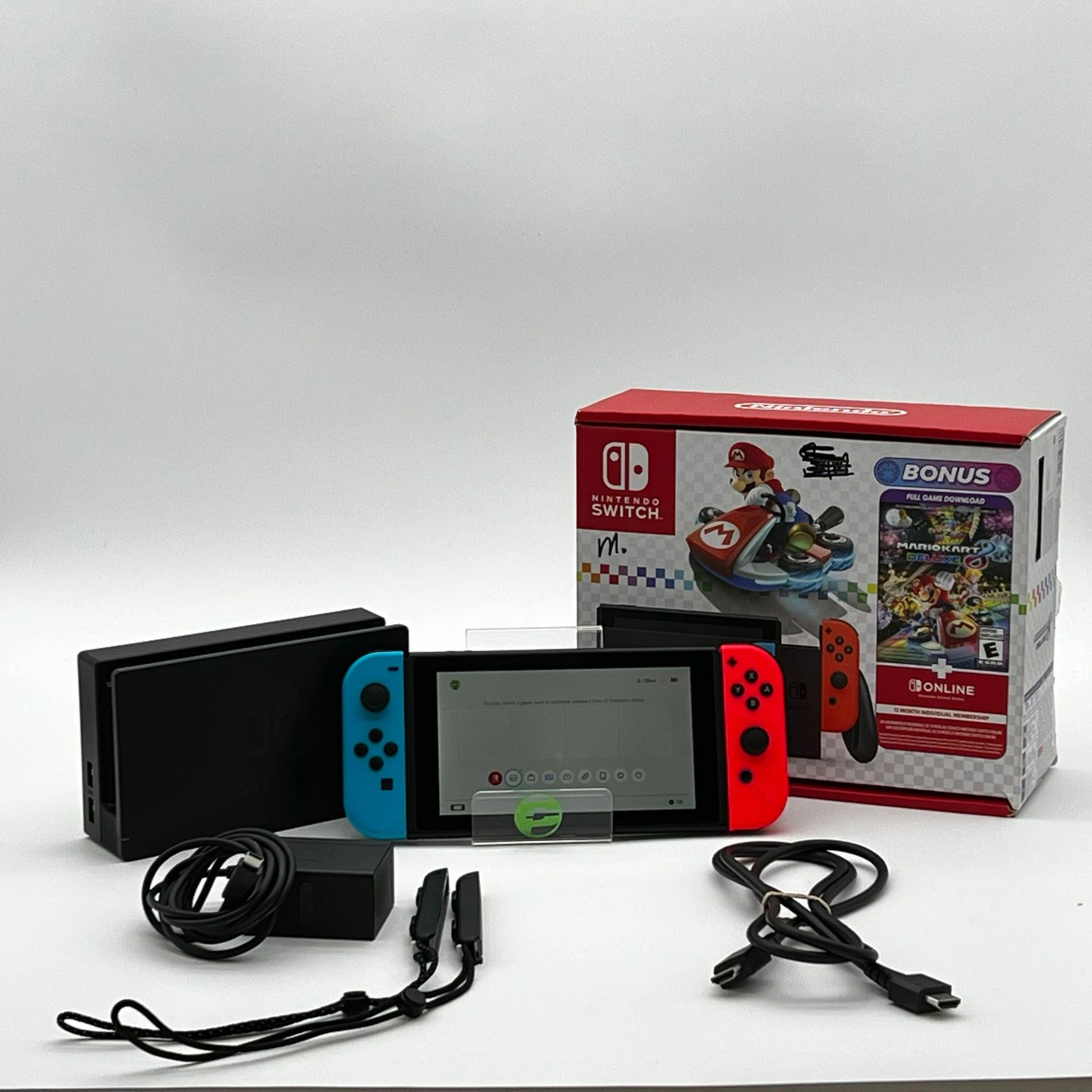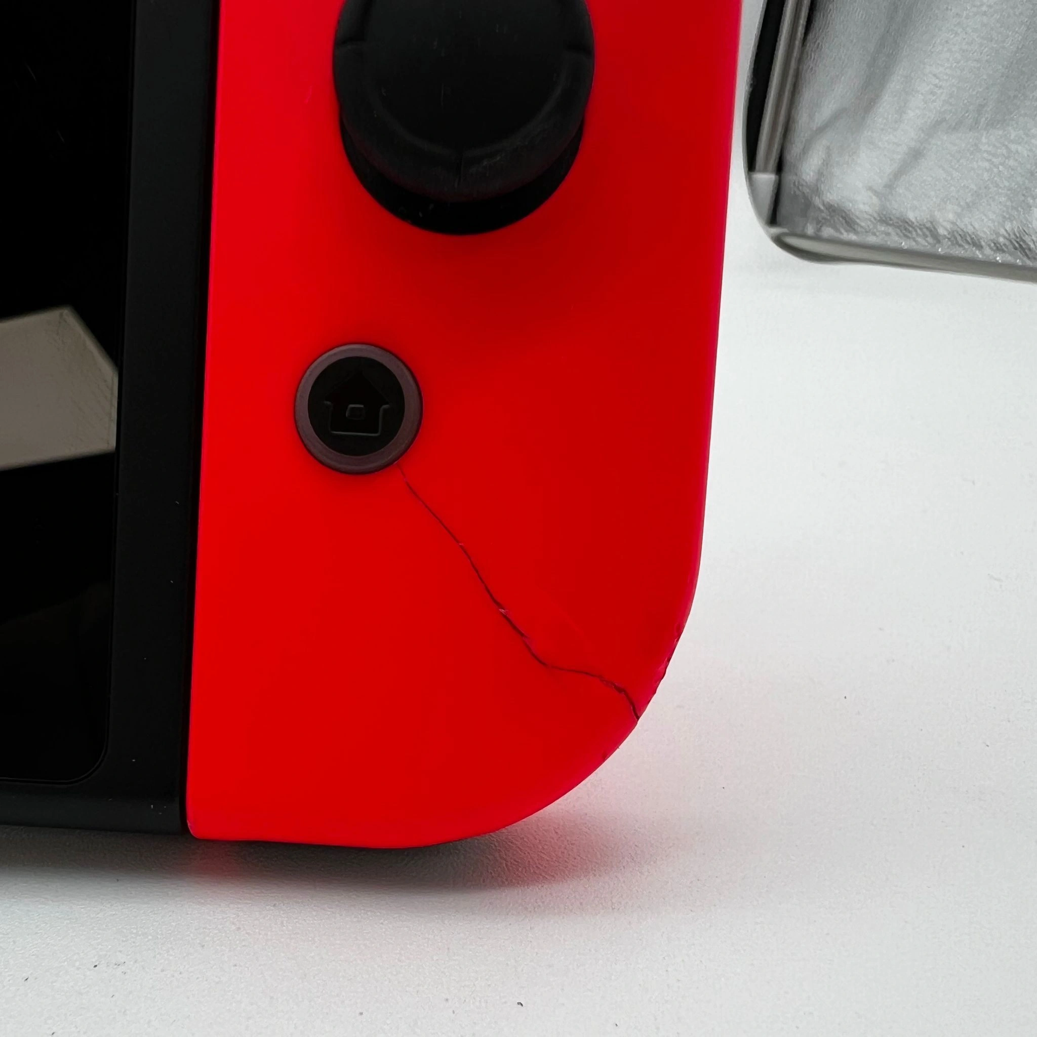 This console is in good cosmetic condition, with minor but noticeable scuffs and wear on the top, bottom, and sides. Please review our close-up photos of the actual item for sale. The cartridge slot and its cover are in good condition and remain intact. Both Joy-Cons work perfectly; however, the red Joy-Con has a crack, while the blue Joy-Con is in good condition. Please view our close up photos, as these are taken of the actual item being offered for sale.