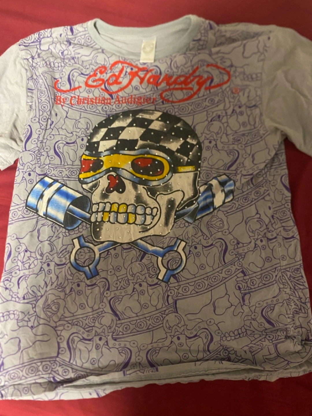 Buy & SellEd Hardy Graphic T-ShirtEd Hardy Graphic T-Shirt$20A light-grey t-shirt with a colourful graphic on the front. A crew neck with short sleeves. You can wear this shirt to relax and feel peaceful.ConditionGoodSizeLBrandEd HardyWHERE TO MEETWilson stationView MapSELLERverifiedRjWilson Station732 reviews0 chats·0 favorites·30 viewsSEND CHAT TO SELLERHi Rj! I’m interested in your listing.Hi Rj! I’m interested in your listing.Get the Karrot app to chatSign In to chat