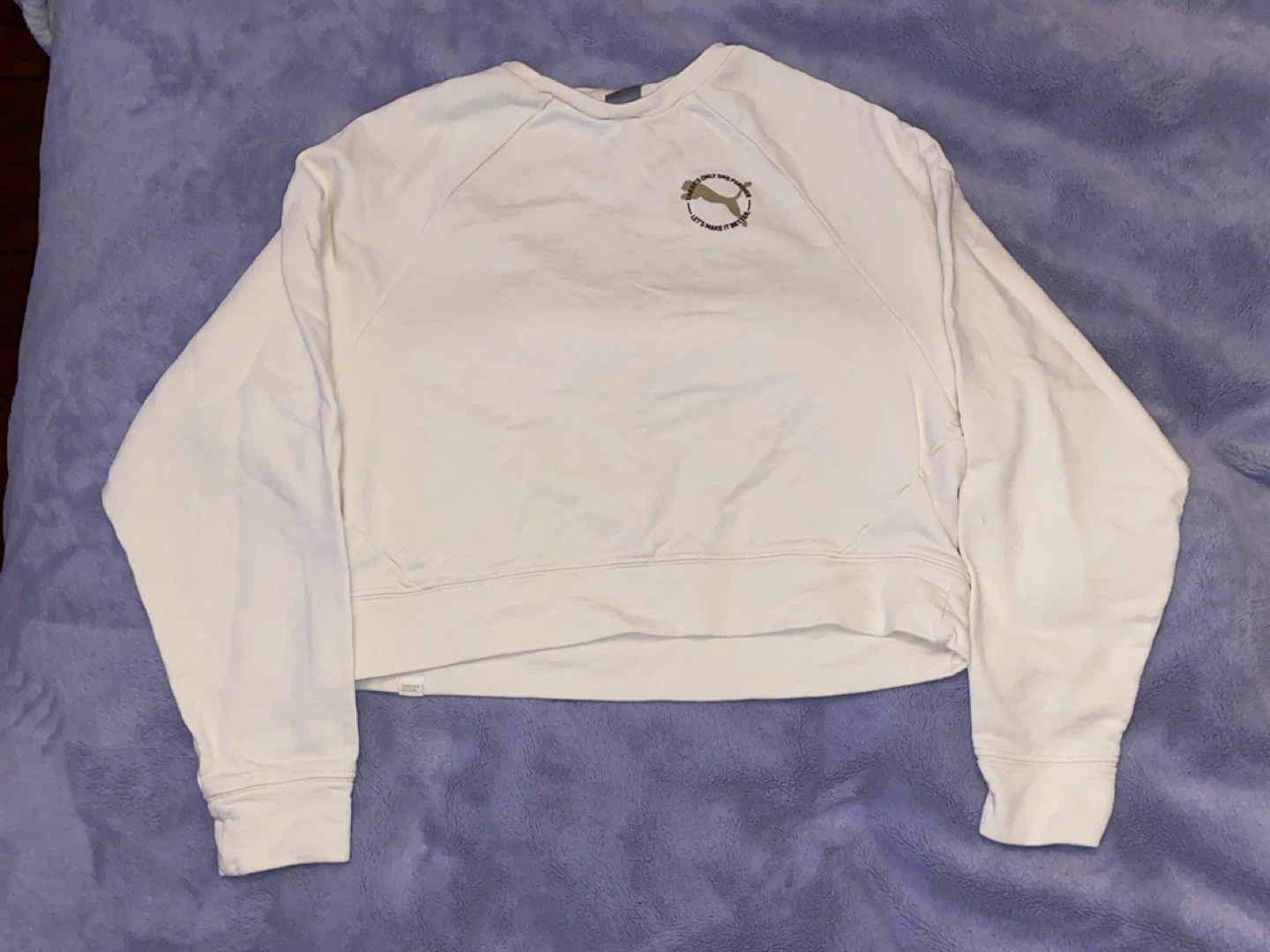 Selling a Puma cream-coloured crewneck sweater in size medium. It's in great condition and ready for a new wardrobe!