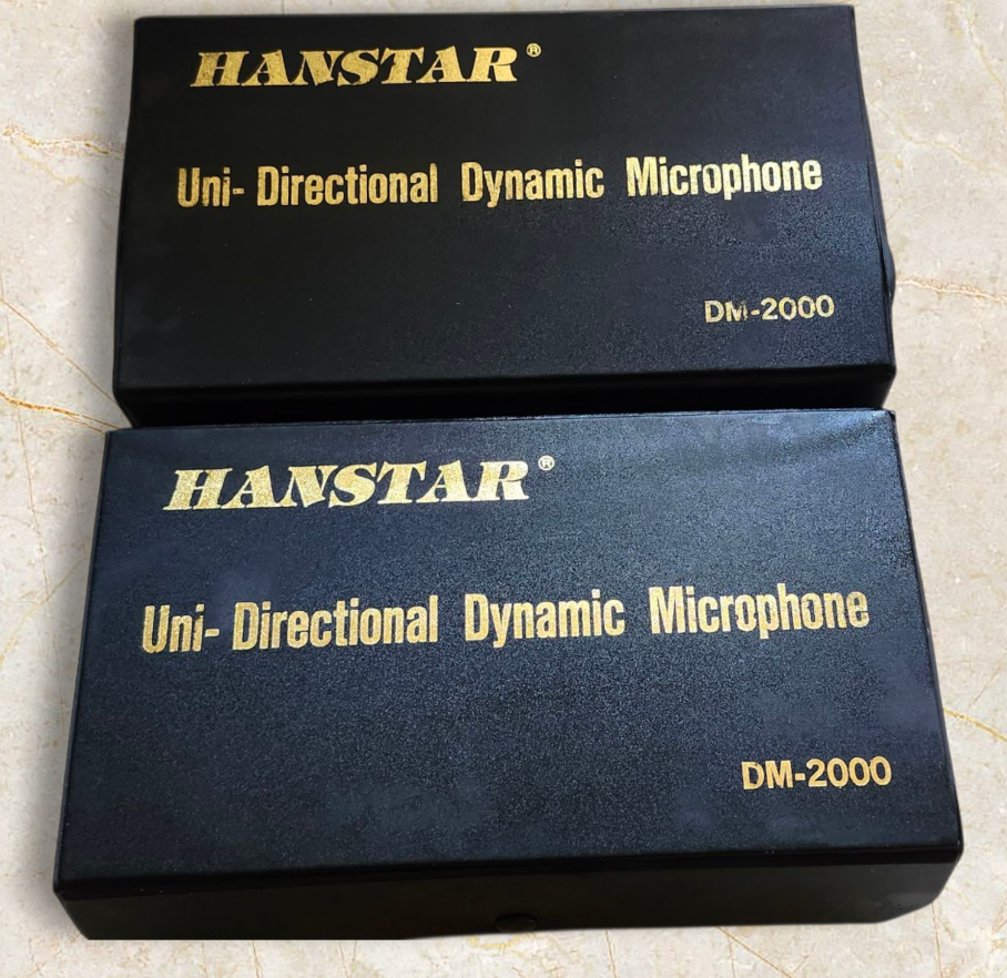 Selling two HANSTAR DM-2000 Uni-Directional Dynamic Microphones! They both come with their original boxes and included cables. Perfect for anyone looking for a reliable microphone for singing or speaking