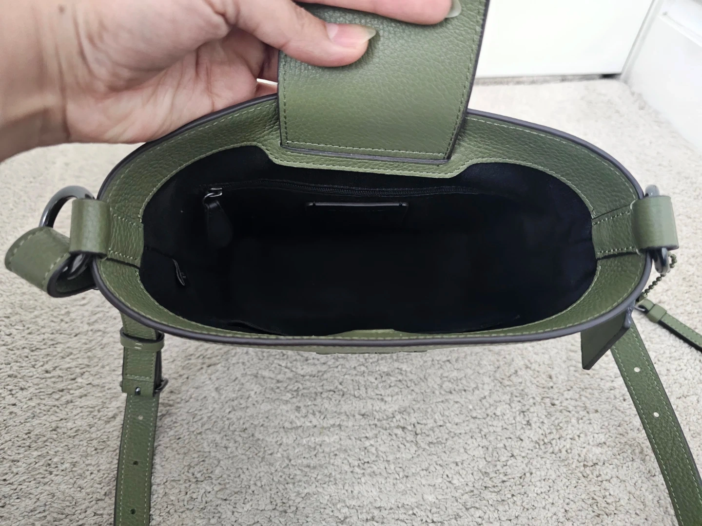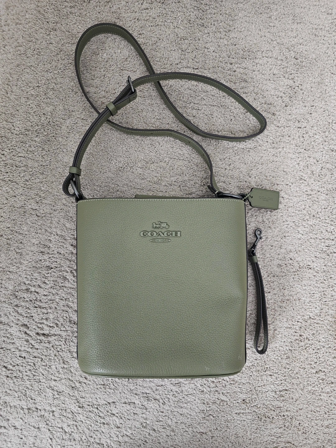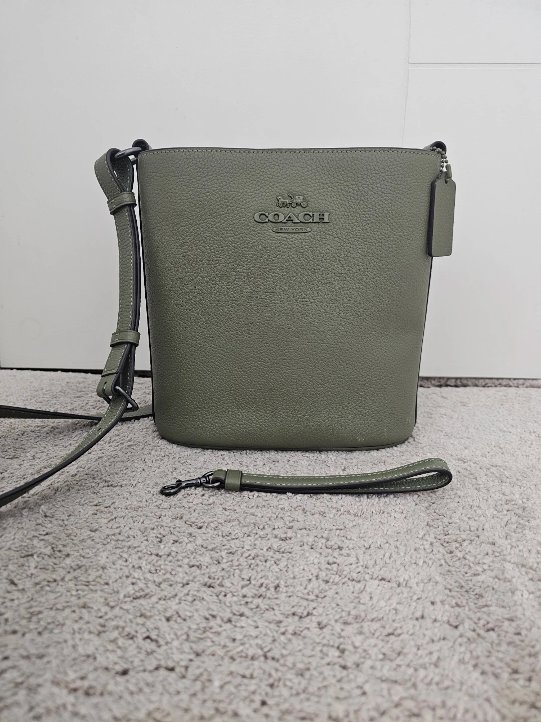 Authentic Coach Leather Bucket Bag, Olive Green