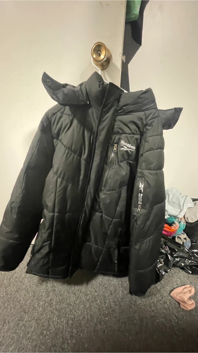 Selling a black Reebok puffer jacket in size L/G. It's in great condition and perfect for staying warm during the colder months!