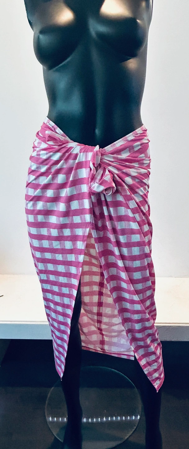 New with tags Jacquemus pink checkered skirt/sarong. Size medium. Elastic waist. Tie up. Slit. Lightweight and soft fabric. Beautiful for going out or pool/beach. Polyester and nylon. New. Never worn.
