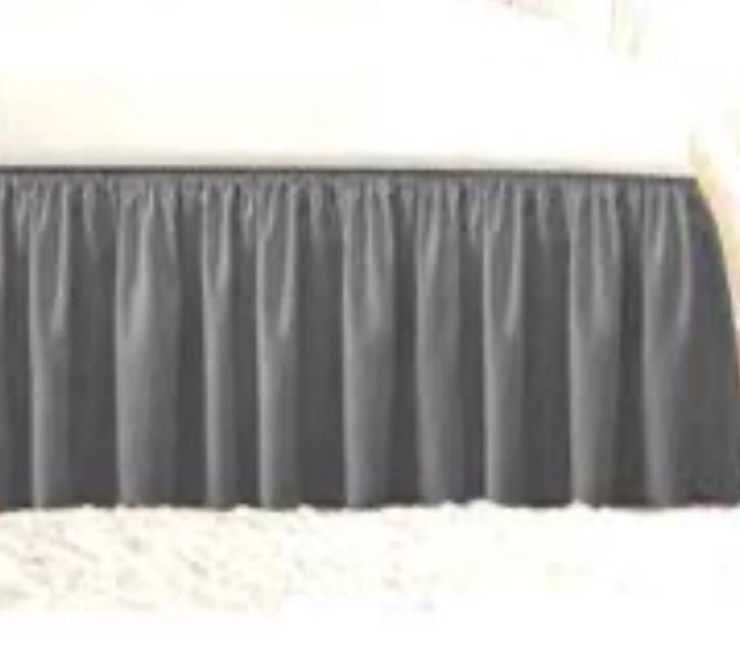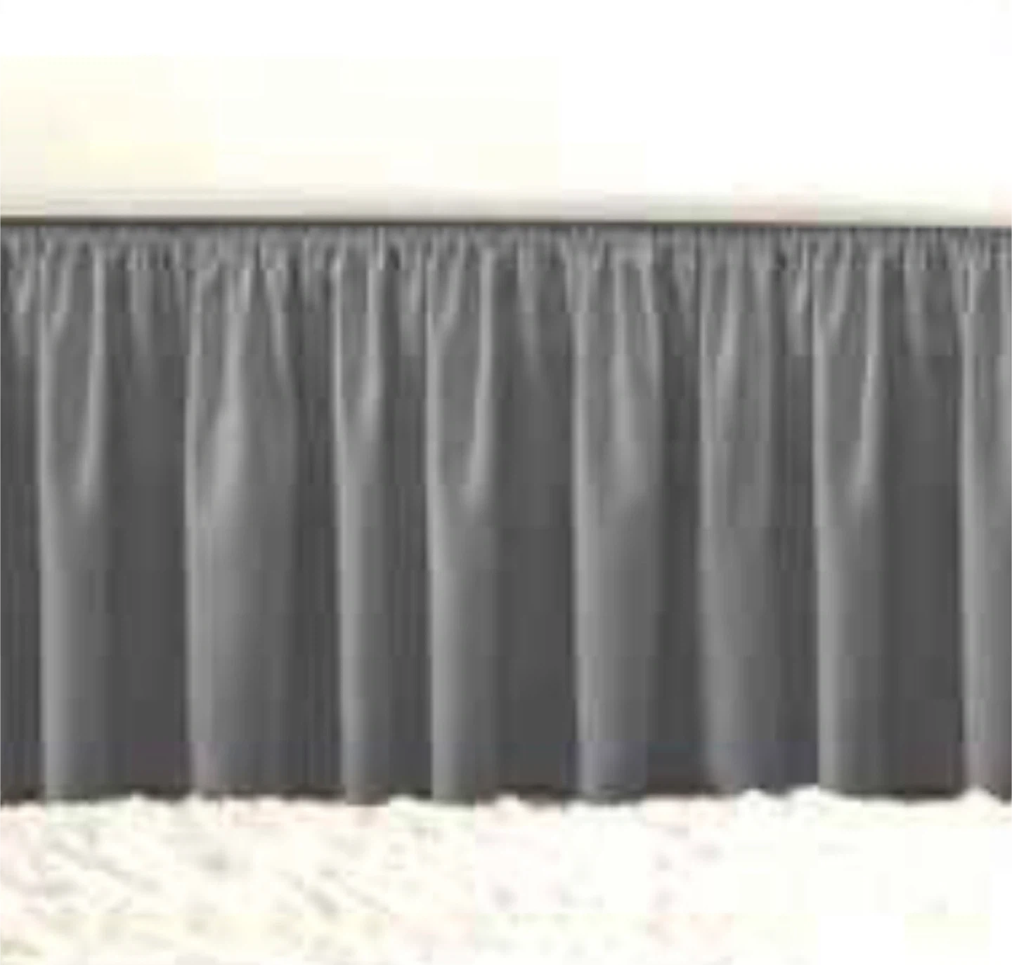 This grey bed skirt adds a clean, finished look to any bedroom. It features a ruffled design that drapes elegantly. It's made from a soft fabric that's easy to care for.