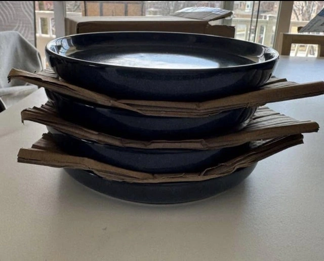 Originally a 12-piece set, this Thyme & Table Atlantic Blue stoneware collection brings modern style and everyday durability to your table. Please note: 4 bowls are missing, leaving 8 brand-new plates (4 dinner plates + 4 salad plates). The missing pieces are shown in the photos. Details: • Premium stoneware with a rich Atlantic Blue finish • Includes: 4 dinner plates + 4 salad plates (no bowls) • Brand new, unused, and in the original box • Microwave safe • Dishwasher safe (hand wash recommended for longevity) Perfect for anyone who already owns this set and needs matching pieces — or anyone looking for a stylish, high-quality partial set at a great value. Cash accepted.