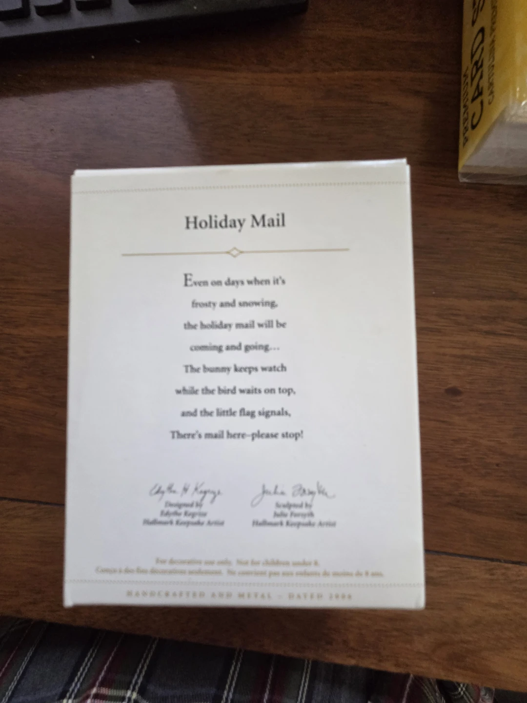Selling a new Hallmark Keepsake ornament, "Holiday Mail"! It's from the 2006 Tip Gift Exclusive collection. The ornament features a charming mailbox design with a bunny and bird. Comes in the original box, ready to add a festive touch to your holiday decorations.