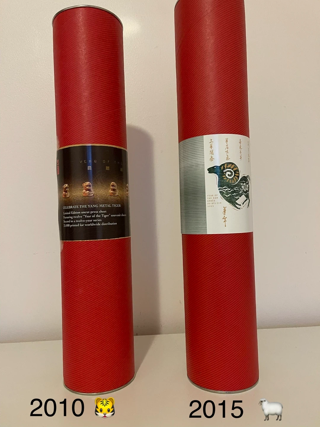Celebrate the Year of the Yang Metal Tiger in 2010 with this limited edition uncut press sheet. It's the second in a twelve-year series, with 25,000 printed worldwide. Also includes a sheet for the Year of the Ram in 2015. $40 each .
