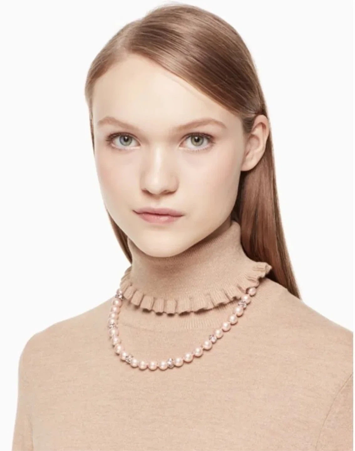 White faux pearls not pink color the last 2 pictures just to show the length.