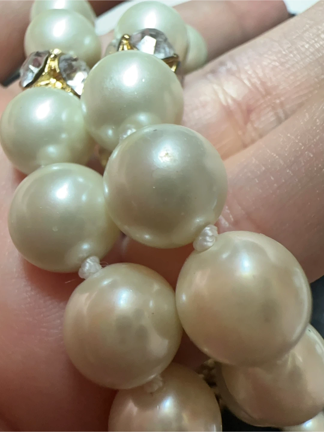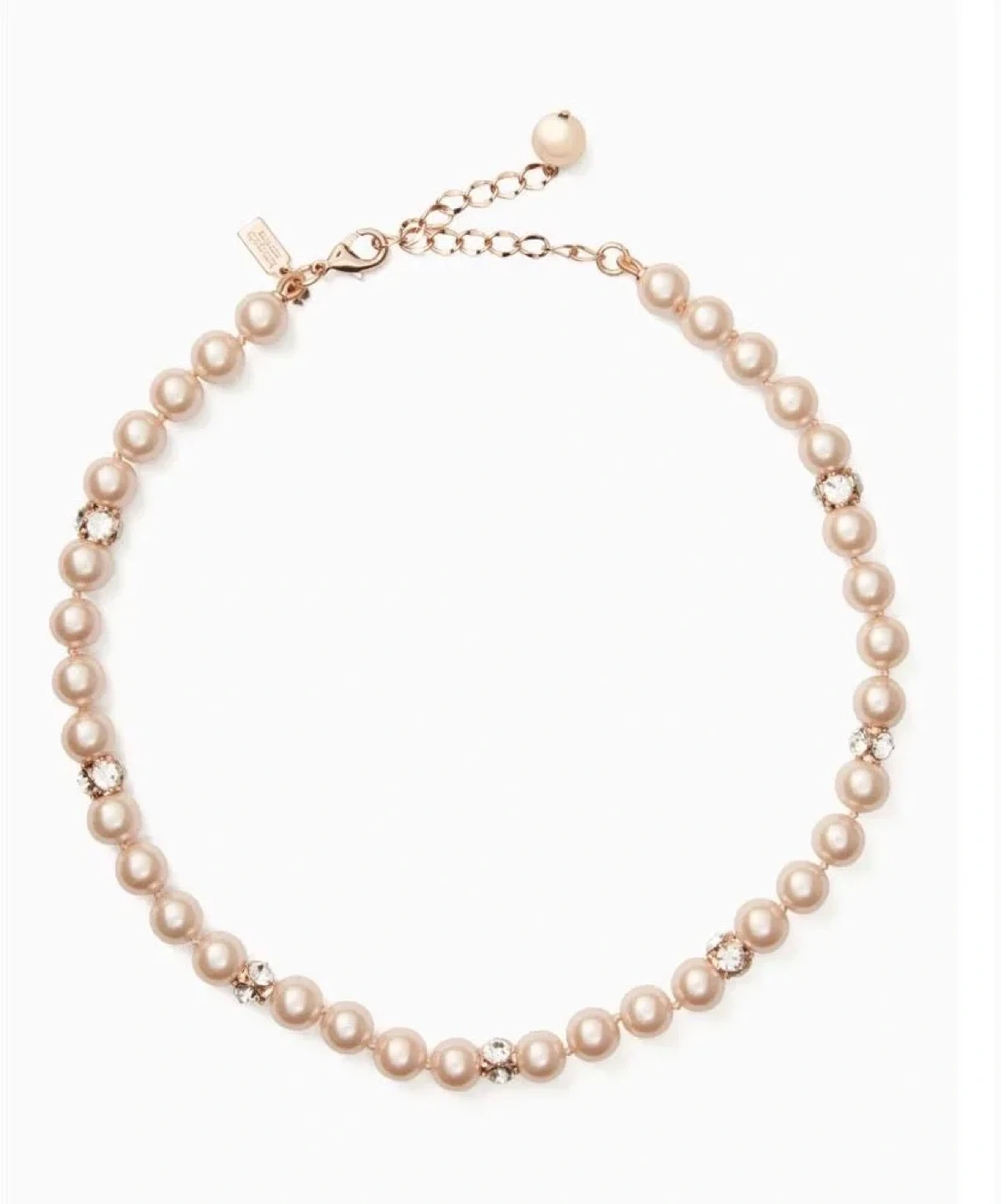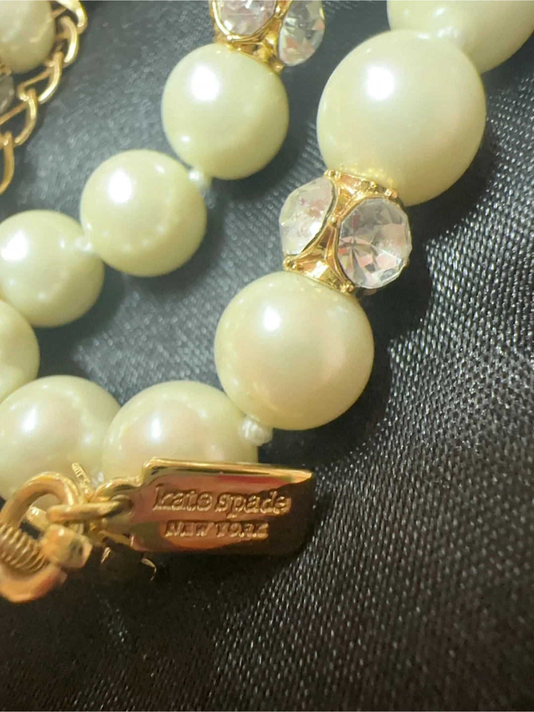 This is a beautiful Kate Spade pearl necklace with crystal accents. It's in great condition and perfect for adding a touch of elegance to any outfit. Not brand new small tiny wear shows on picture 4.