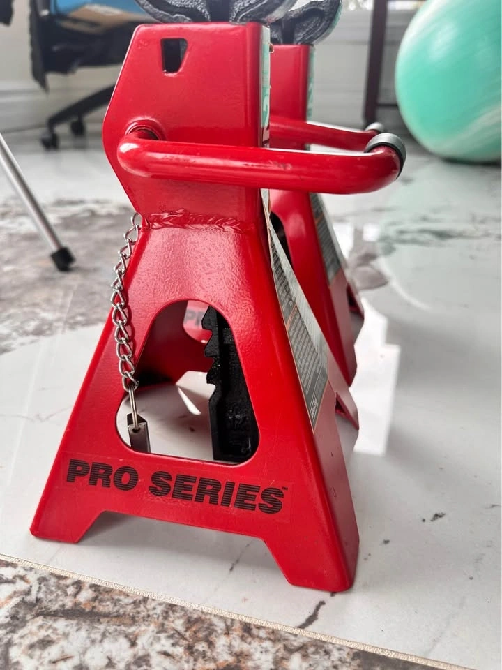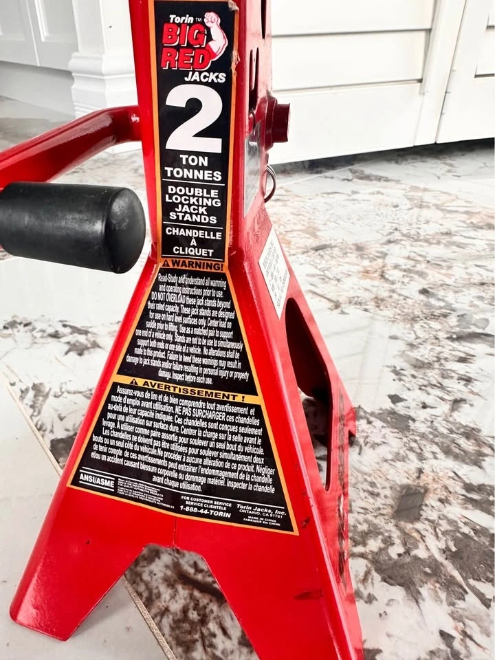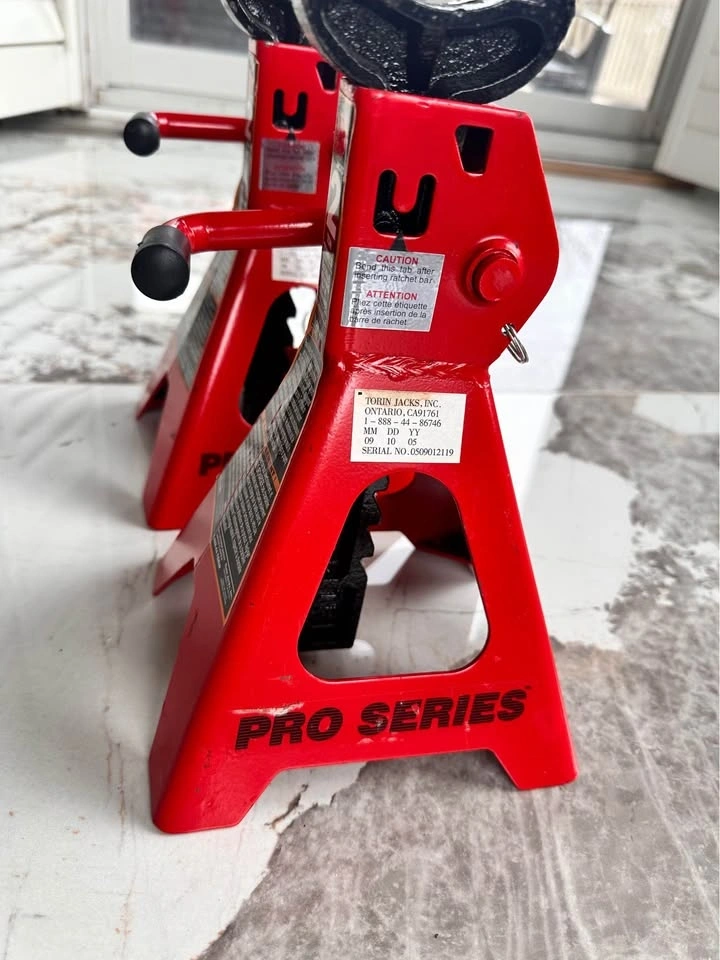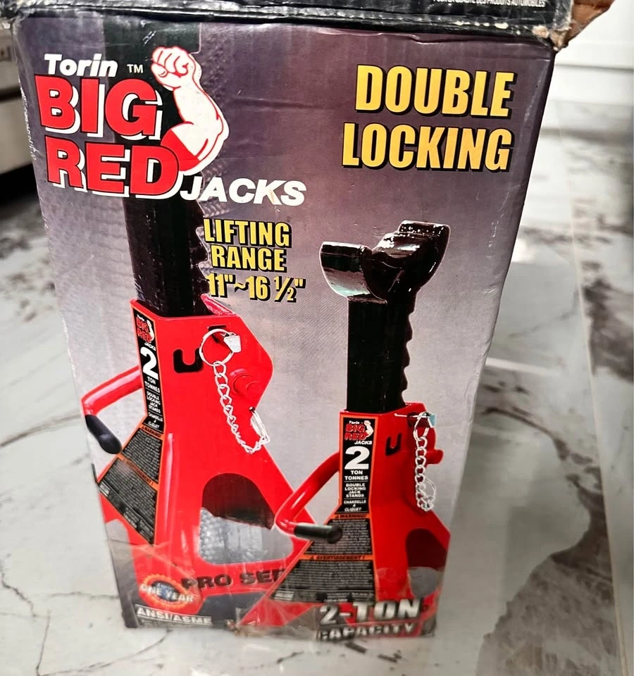 Selling a pair of Torin Big Red 2-Ton jack stands in excellent condition. These are the double-locking version, which includes both the ratchet lock and the manual safety pin for extra security while working under your vehicle.