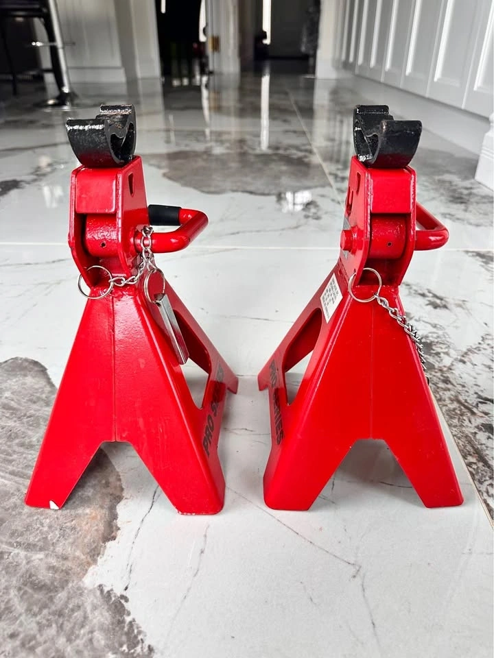 Selling a pair of Torin Big Red 2-Ton jack stands in excellent condition. These are the double-locking version, which includes both the ratchet lock and the manual safety pin for extra security while working under your vehicle.