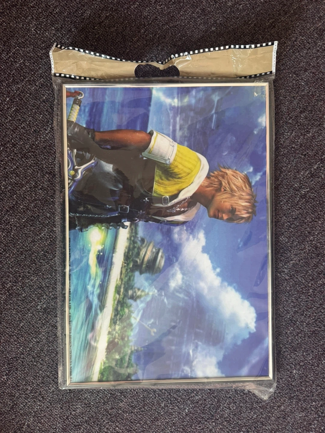 This poster features artwork from Final Fantasy X. It's in its original packaging. The frame is silver-toned.