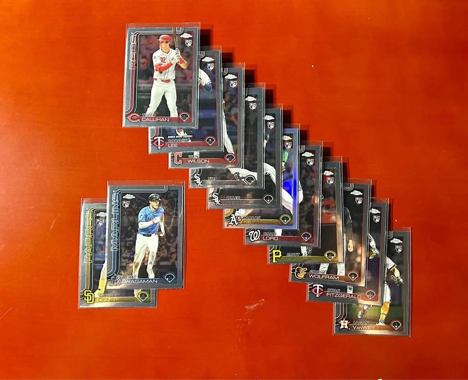 This lot contains 13 Topps Chrome rookie cards from 2025. All cards have been kept in excellent condition and stored properly. Selling as a lot, not separating. Let me know if you're interested!