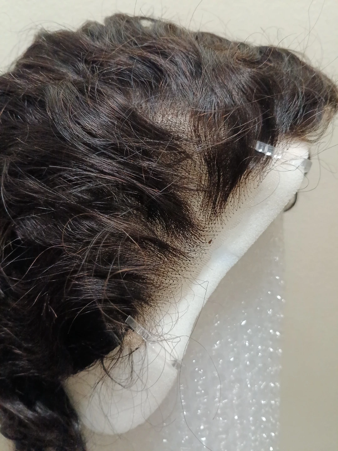 New!!! Selling a beautiful curly human hair wig in a dark brown shade. Ready to wear! The wig has a lace front for a natural look.