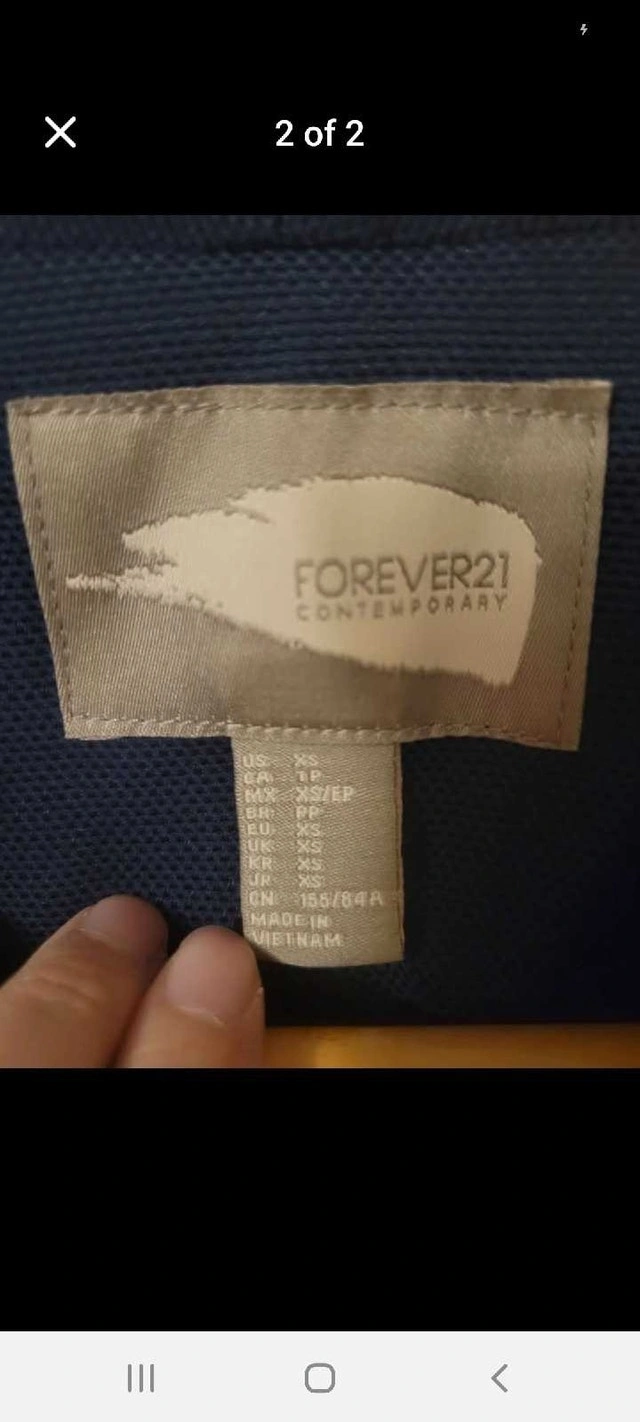 This is a Forever21 blazer in excellent used condition, perfect for adding a touch of style to any outfit. It is a size XS. Brand: Forever21. Size: XS. Colour: Blue. It's always blazer weather, so why not add this one to your wardrobe? And yes, if you're reading this, it's still available!