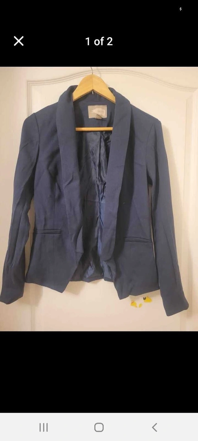 This is a Forever21 blazer in excellent used condition, perfect for adding a touch of style to any outfit. It is a size XS. Brand: Forever21. Size: XS. Colour: Blue. It's always blazer weather, so why not add this one to your wardrobe? And yes, if you're reading this, it's still available!