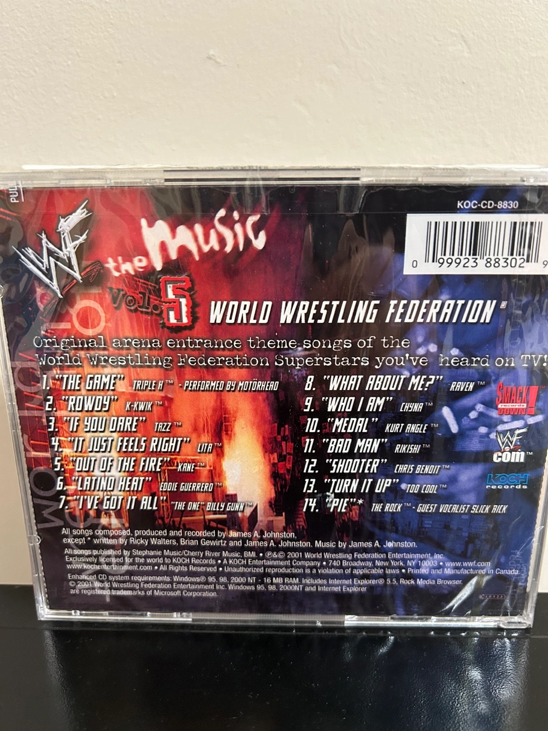 Selling a WWF The Music Volume 5 CD by World Wrestling Federation. It features original arena entrance theme songs of the World Wrestling Federation Superstars you've heard on TV! The CD is still sealed in its original packaging. Featuring The Rock!