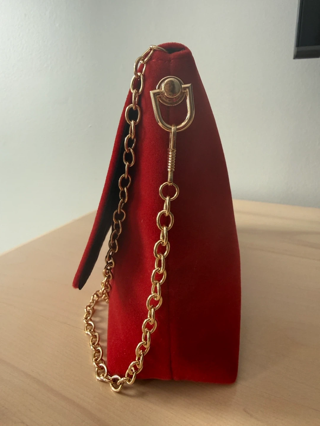 Red Velvet Clutch with Gold Chain