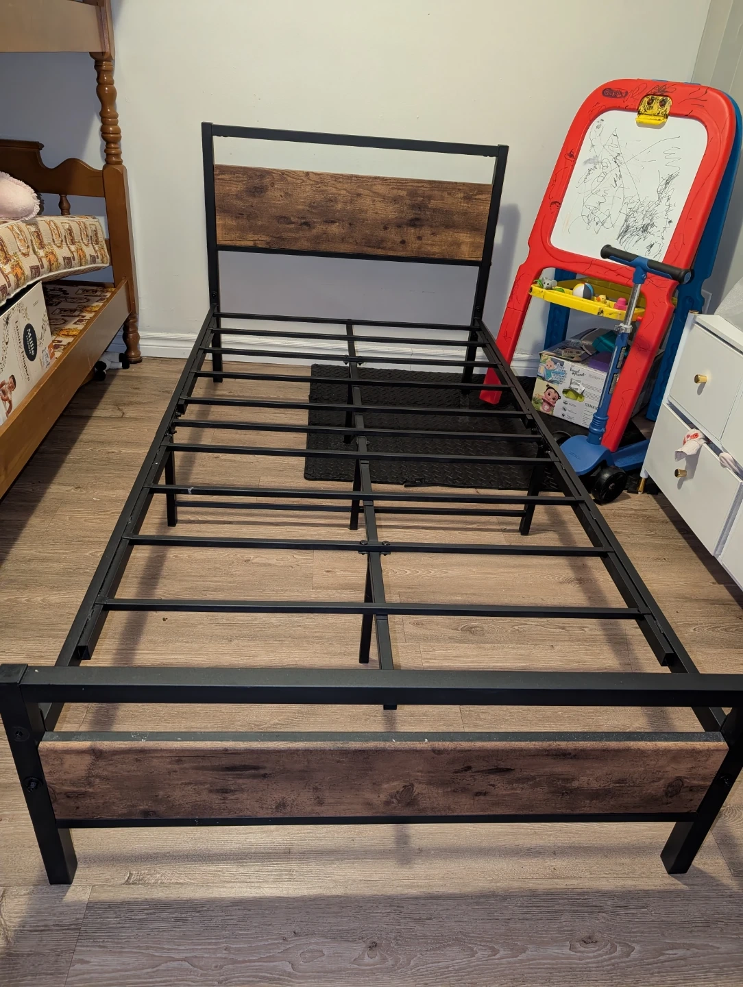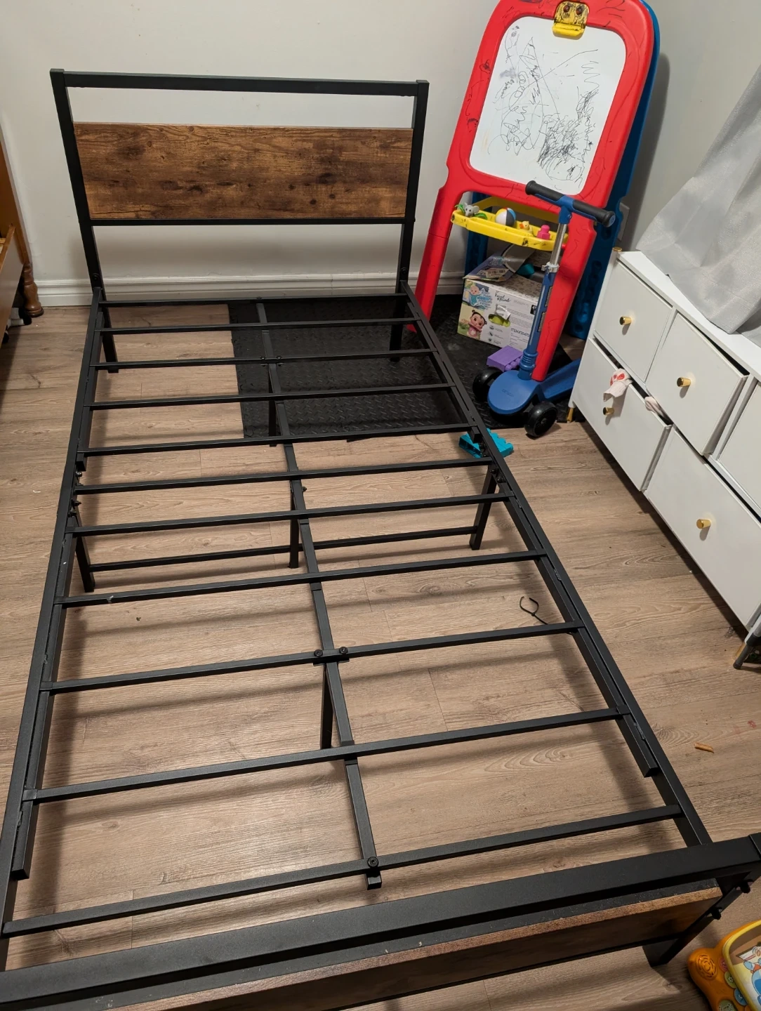 Buy & SellMetal Bed Frame with Wood Headboard - twinMetal Bed Frame with Wood Headboard - twin$80twin metal bed frame with a wood headboard. Selling because we got bunk beds. It's in mint condition.ConditionLike newWHERE TO MEEThomeView MapSELLERMikeArgyle90 reviews0 chats·0 favorites·59 viewsSEND CHAT TO SELLERHi Mike! I’m interested in your listing.Hi Mike! I’m interested in your listing.Get the Karrot app to chatSign In to chat