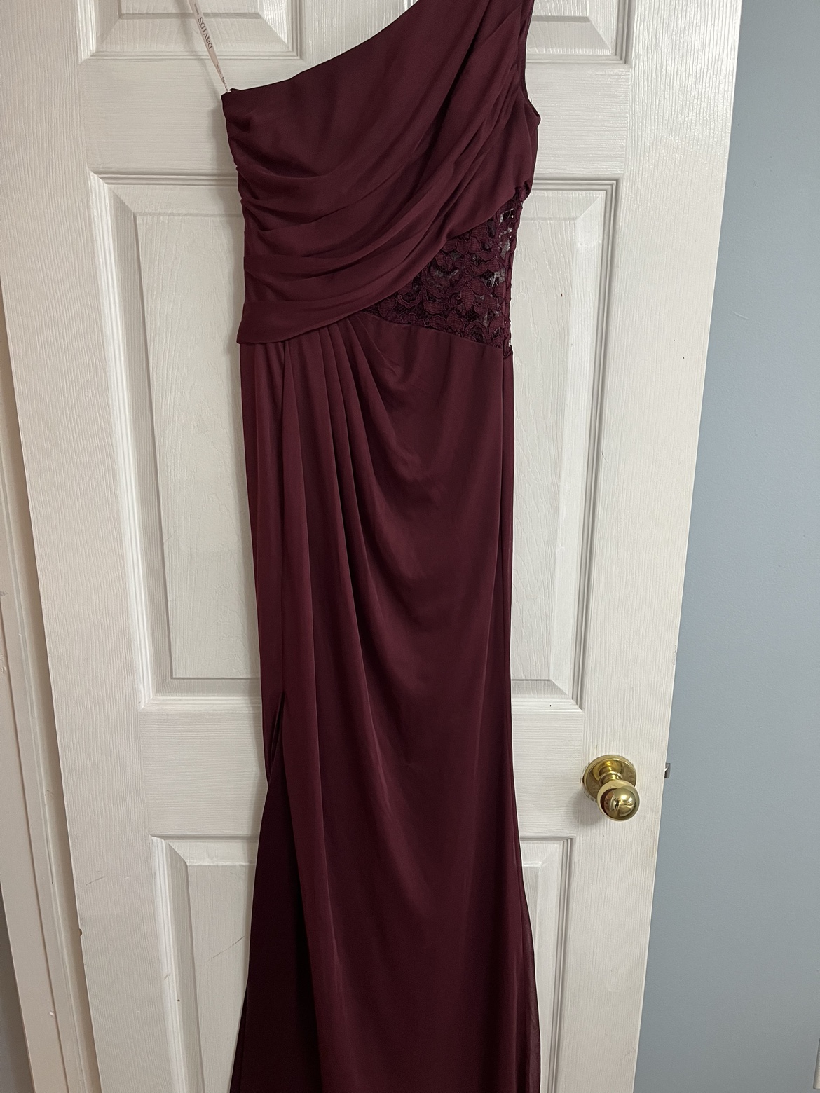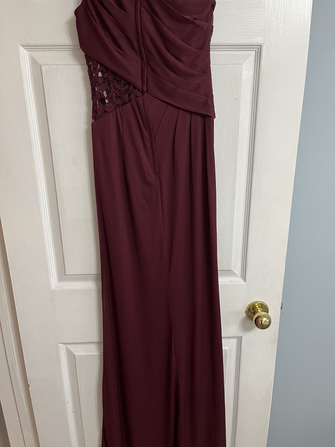 One shoulder Bridemaids dress with lace detailing on the side and a slit on the leg - burgundy/wine colour. Only worn once.