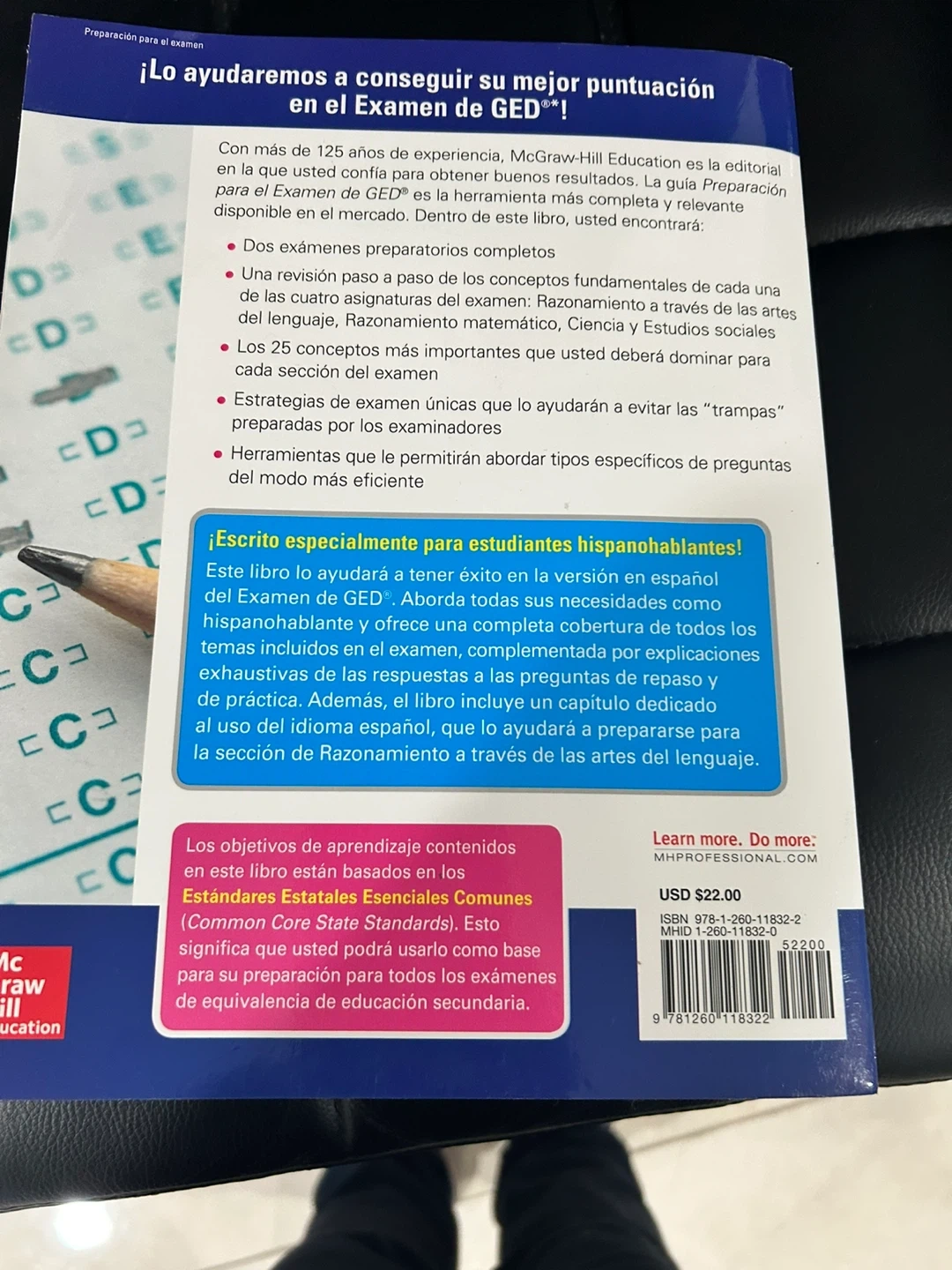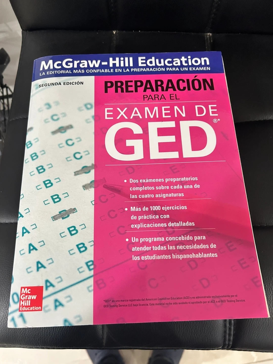 McGraw-Hill Education study guide for the GED exam. This is the second edition, written specifically for Spanish-speaking students. It includes two complete practice exams and over 1000 exercises with detailed explanations. It also covers all topics needed to prepare for the exam.