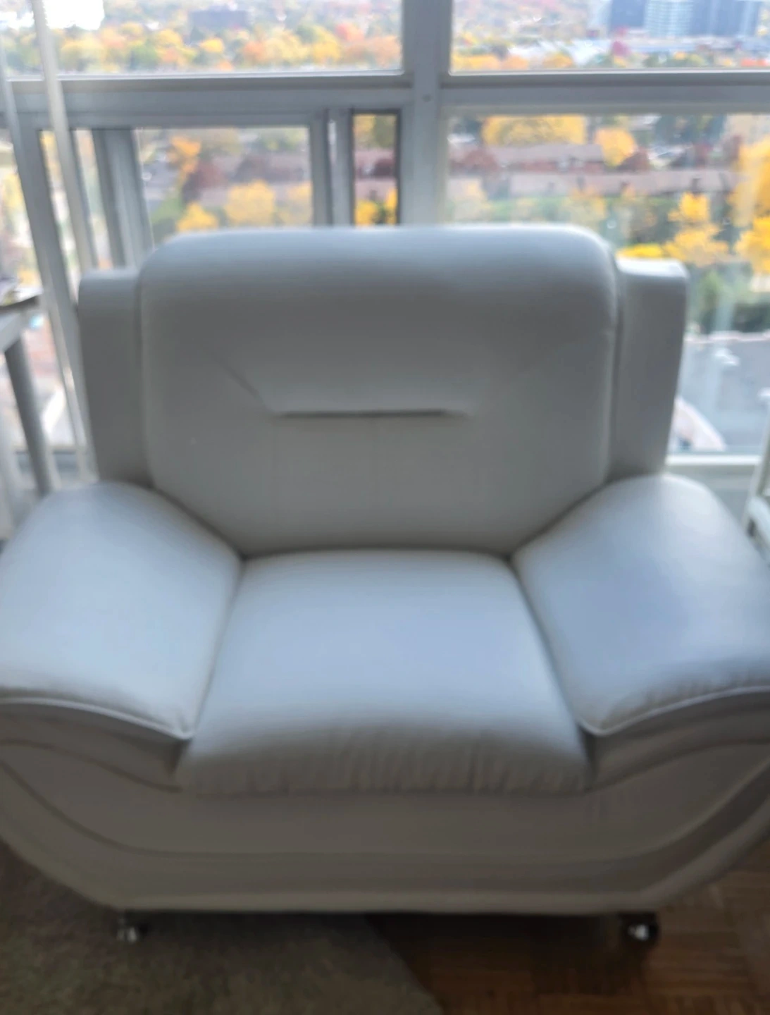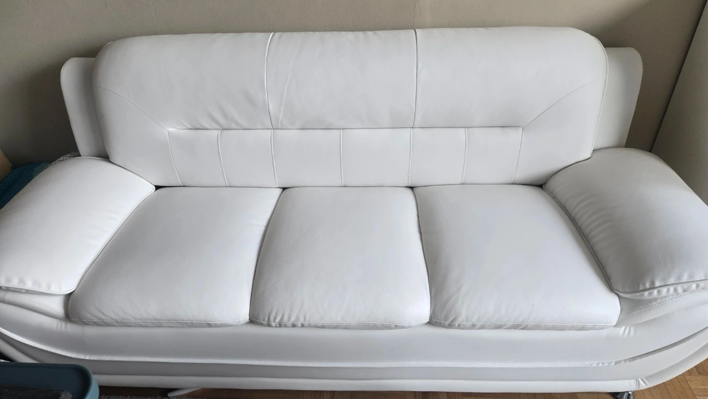 This is a stylish white leather 3 pieces sofa. The modern style fits well in most living spaces/ offices.