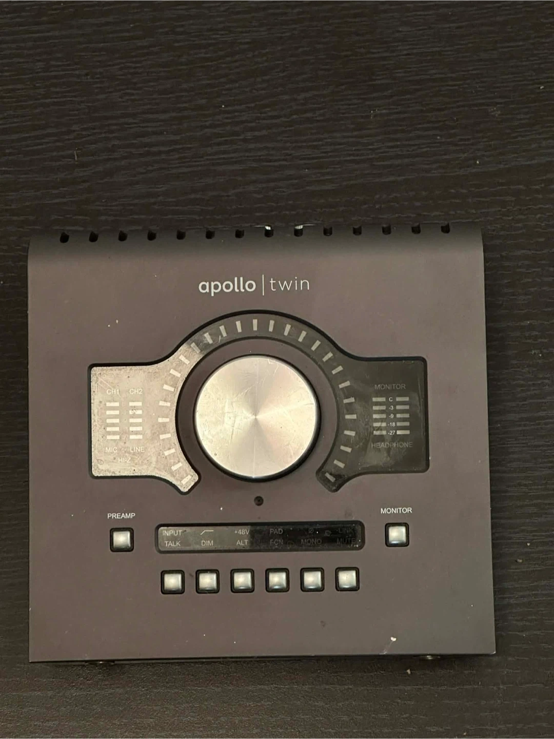 Universal Audio Apollo Twin audio interface. This unit is designed for professional audio recording and monitoring. It's great for musicians and producers. It comes with multiple input and output options.