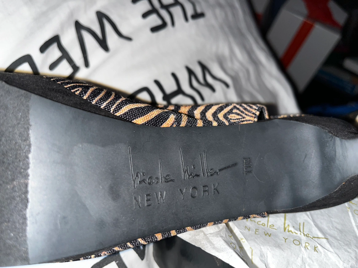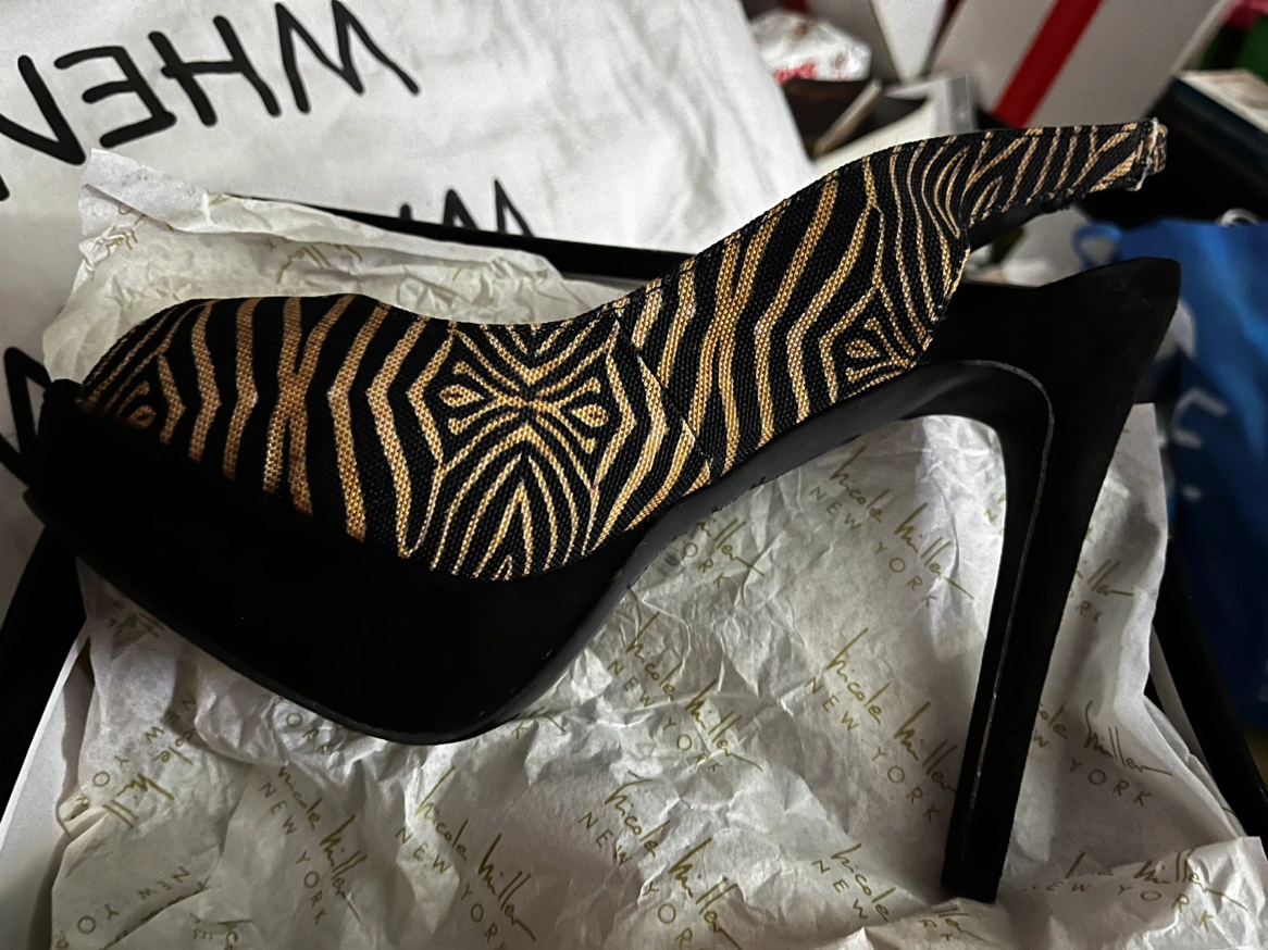 Brand new in a box Nicole Miller open toe high heel pumps