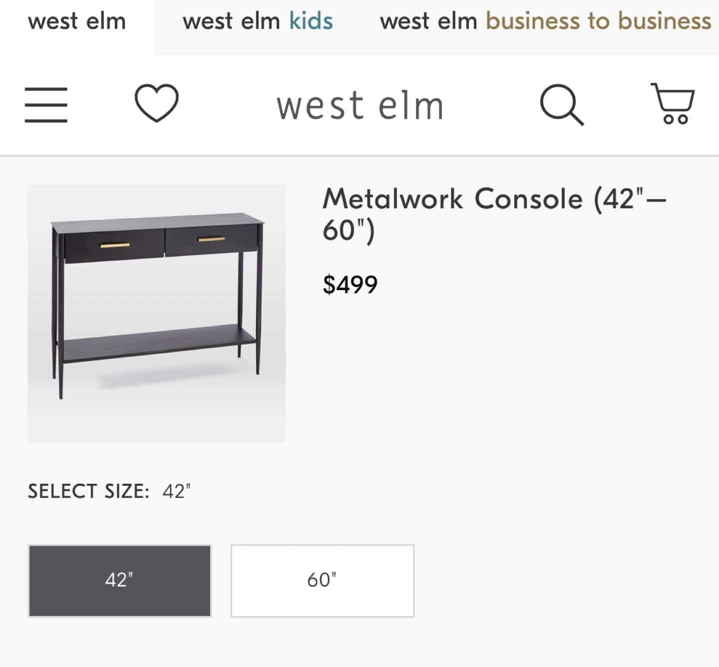 Brand new metalwork console from West Elm. Still in box. Paid $499+ tax. Picture is for reference.