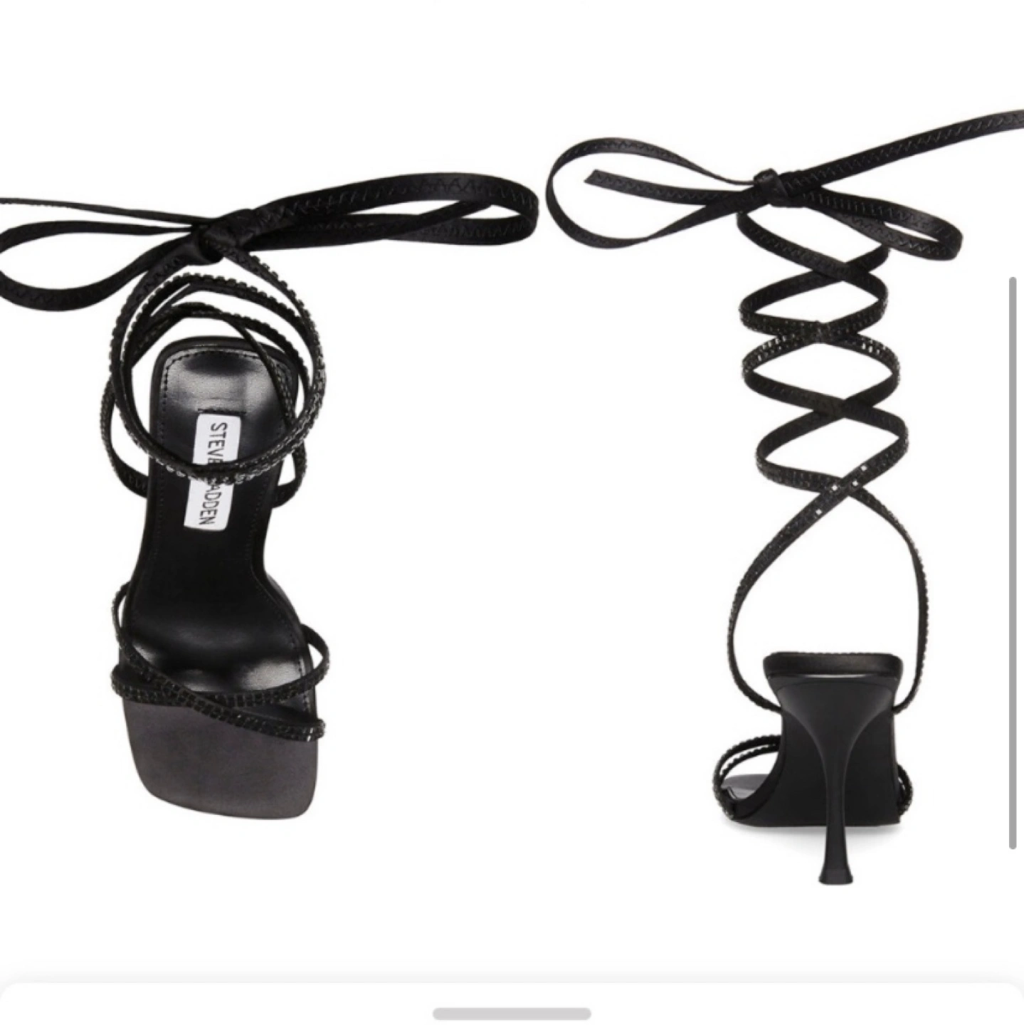 These are a beautiful pair of black heels with rhinestones. They are very comfortable to wear and the straps adjust to fit perfectly.