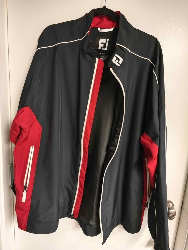 FJ dryjoy rain jacket, red/black, size 2XL. Only worn once. Pickup can be arranged in North Delta, Burnaby, or Richmond on certain days/times.