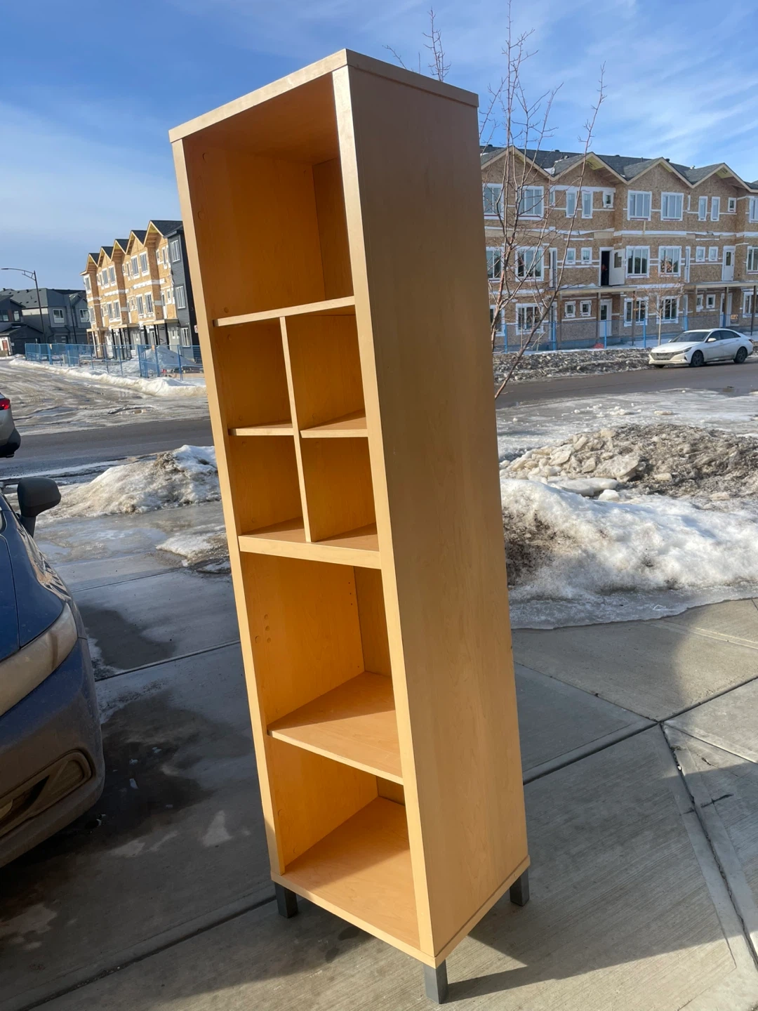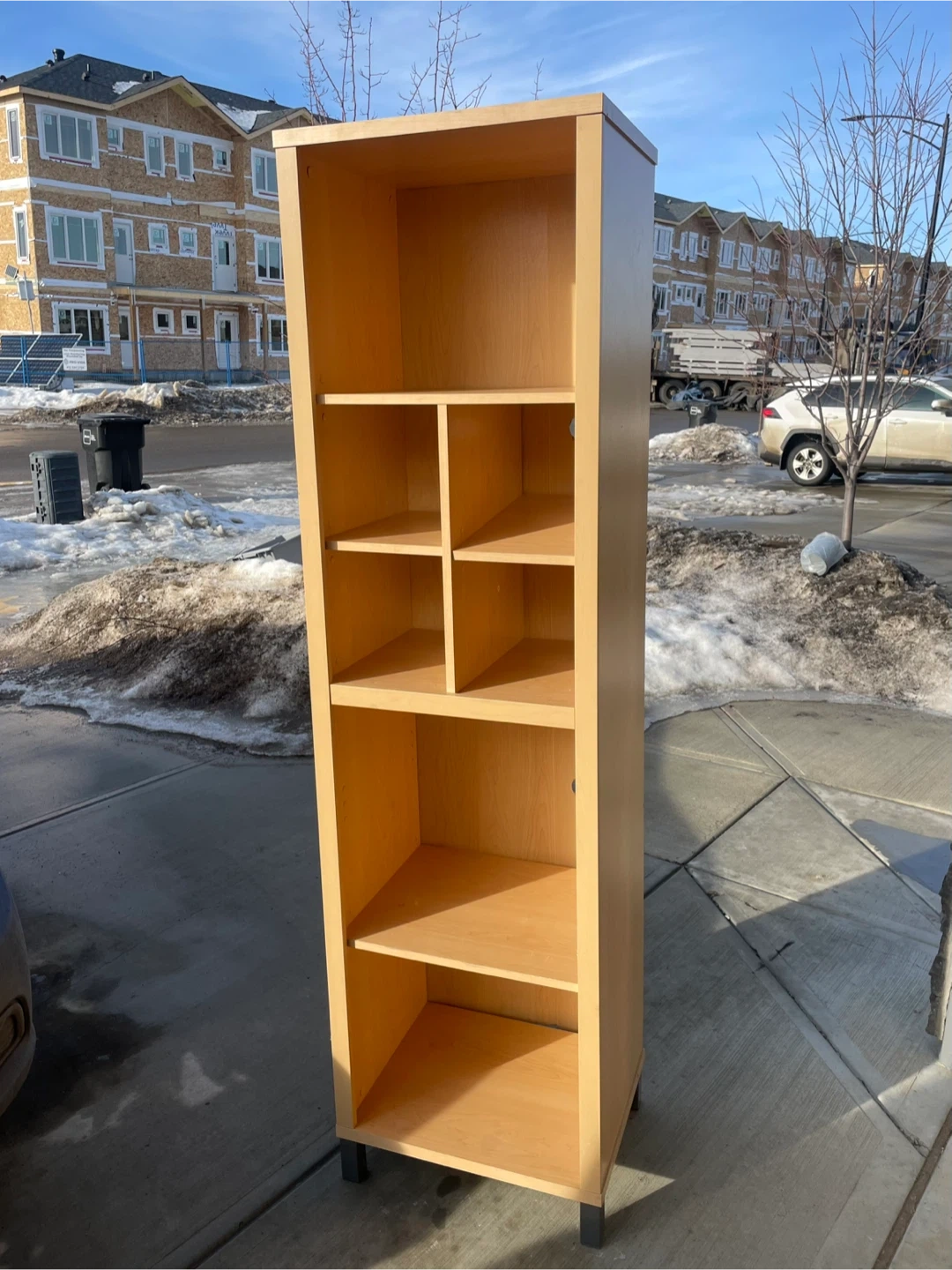 Tall Light Maple Veneer Finish Bookshelf.