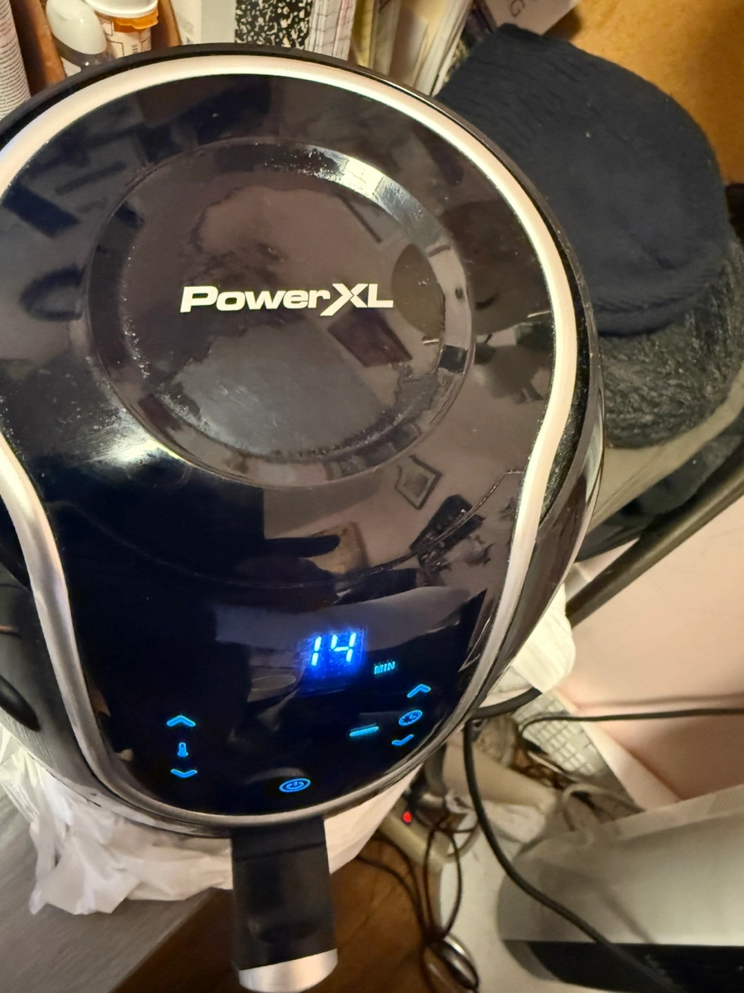 Used one it ’s for 1 or 2 person no Black air fryer, compact size. A great way to cook your favorite foods quickly and easily, giving you more time to relax. Features a digital display.