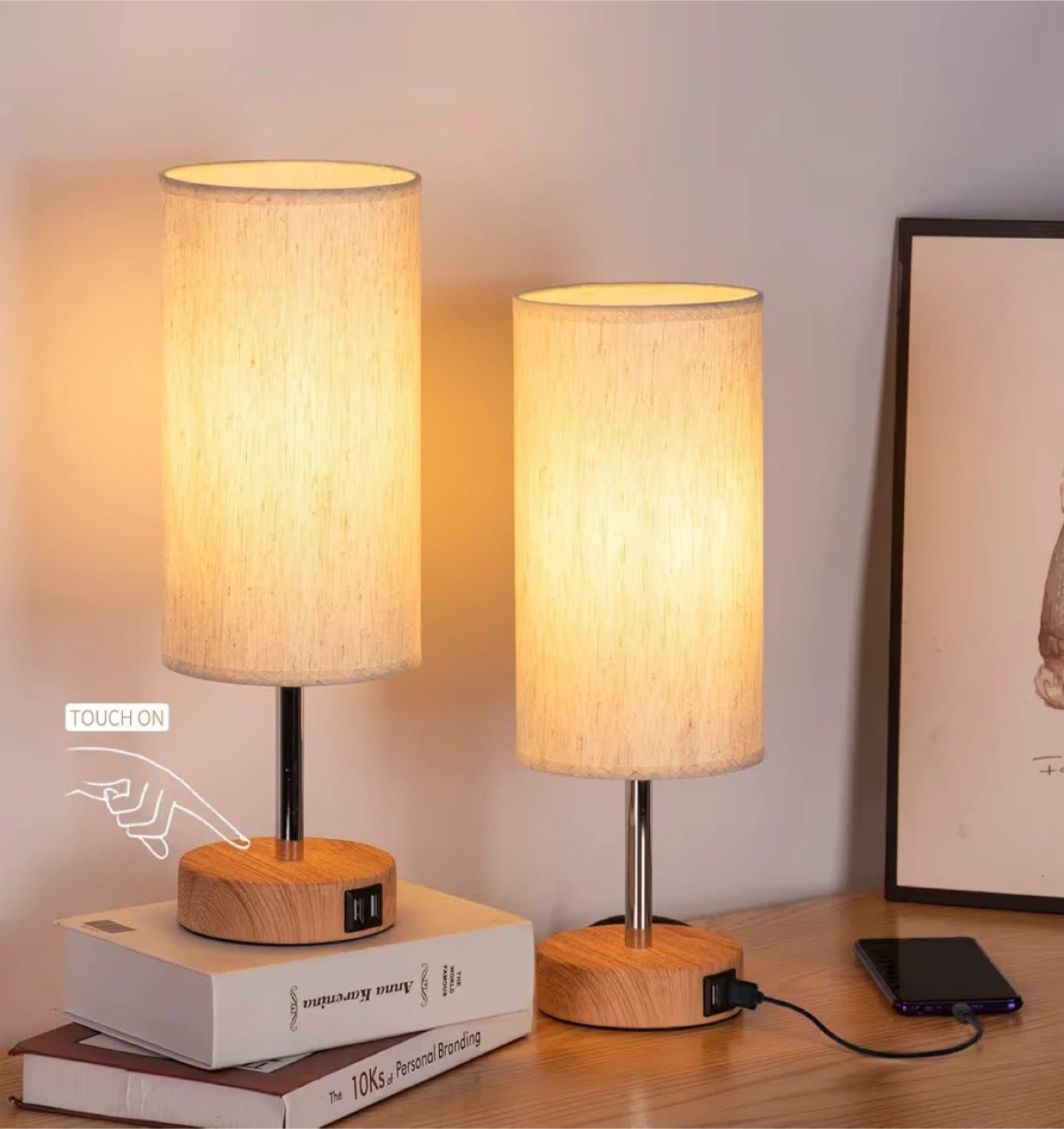 USB Table Lamp with Touch Control (2Pack)