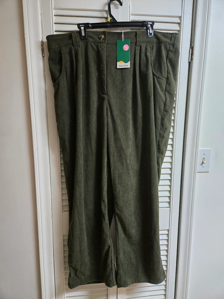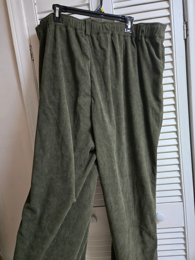 These Halara corduroy pants are super comfy and in great condition! They're a size 3X and made of 100% polyester. The olive green colour is really nice and versatile, perfect for any casual outfit