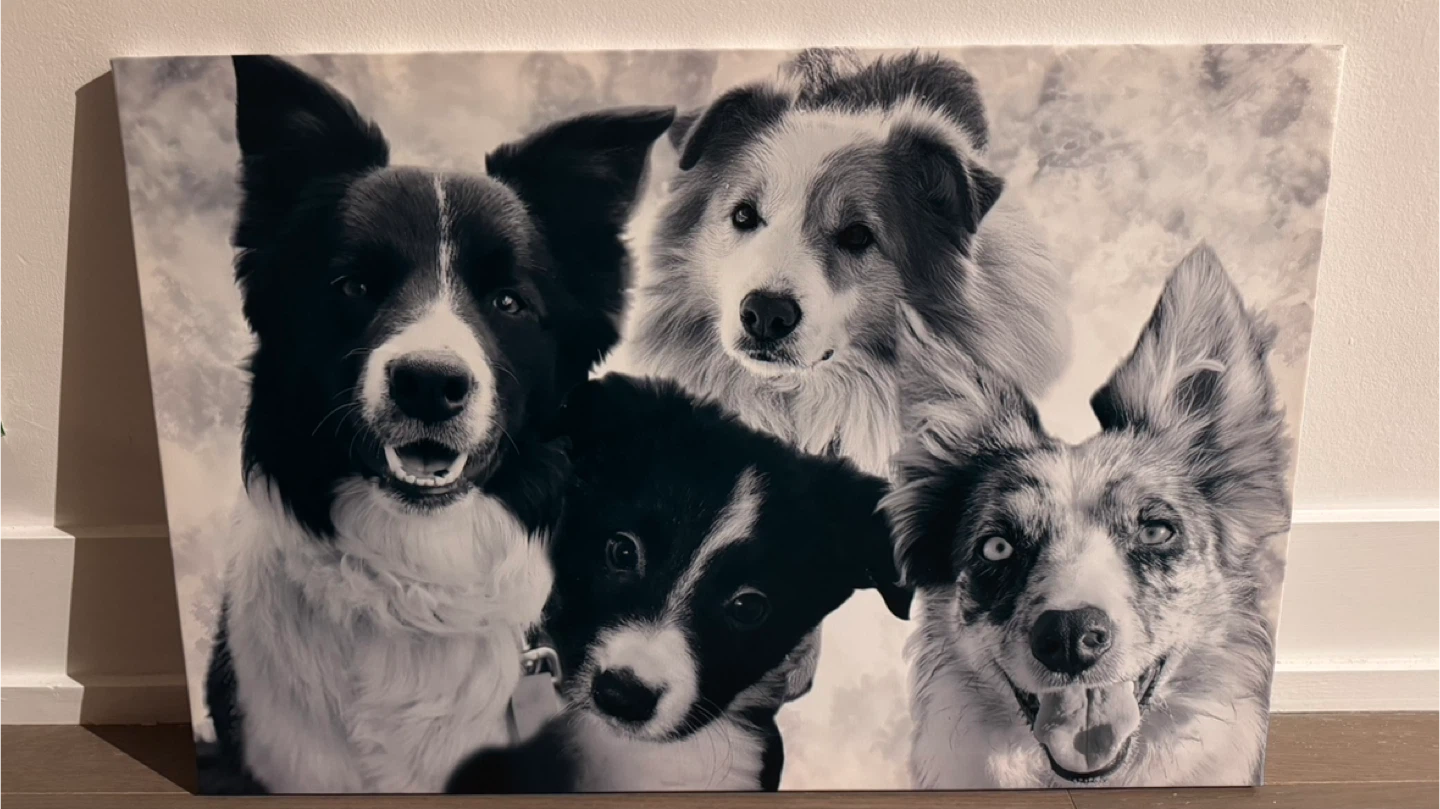 Buy & SellCanvas Print - Four Dogs Black and WhiteCanvas Print - Four Dogs Black and White$25Canvas print featuring a black and white image of four dogs. Measures 16x24 inches (40x60cm). Ready to hang with included hardware.ConditionNewDimensions16x24WHERE TO MEETCheck LocationView MapSELLERverifiedElenaMimico1398 reviews0 chats·0 favorites·3 viewsSEND CHAT TO SELLERHi Elena! I’m interested in your listing.Hi Elena! I’m interested in your listing.Get the Karrot app to chatSign In to chat