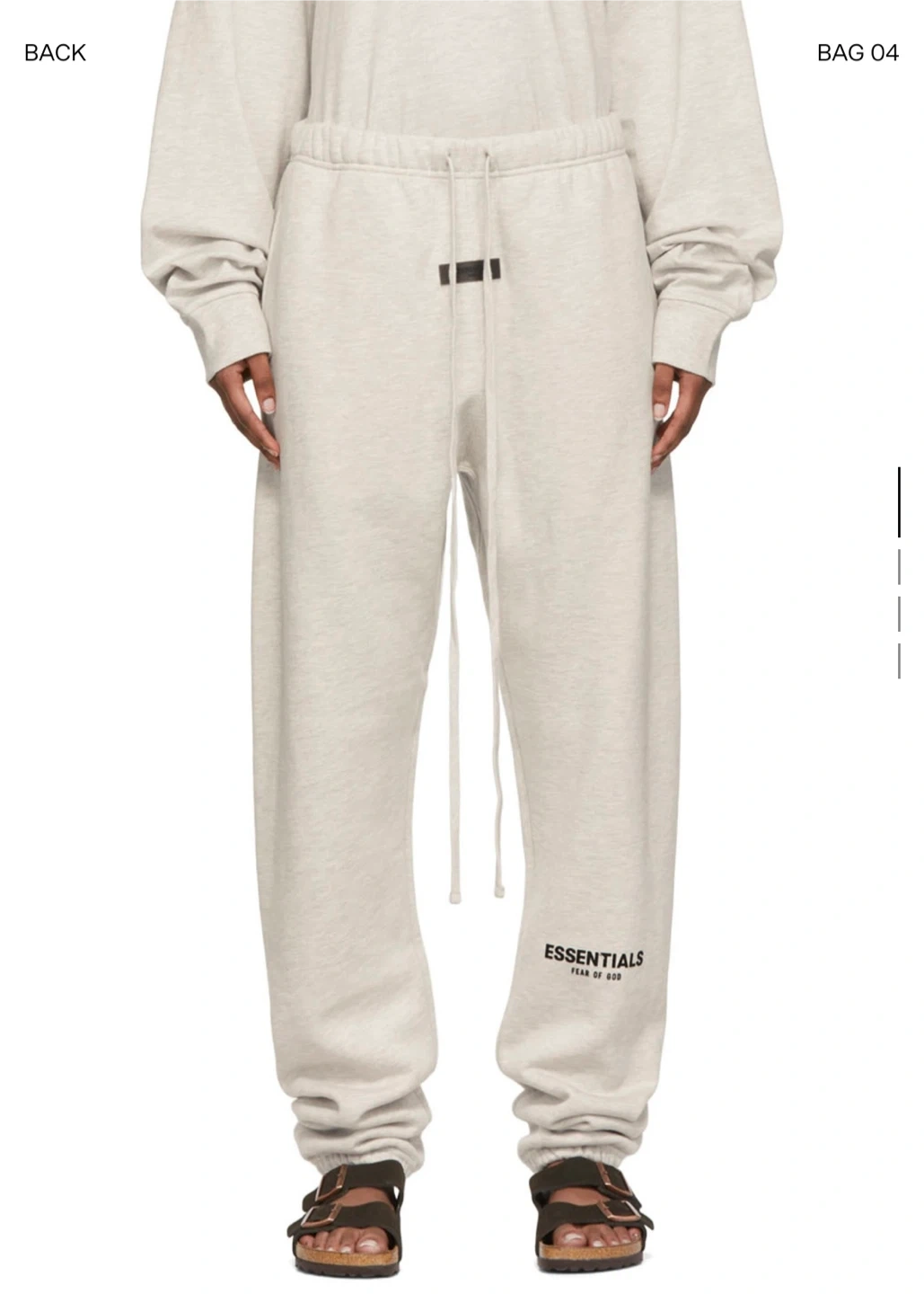 Selling a pair of Essentials Fear of God sweatpants in size small. They're a light grey colour and made of a comfortable material. Great for lounging or casual wear!