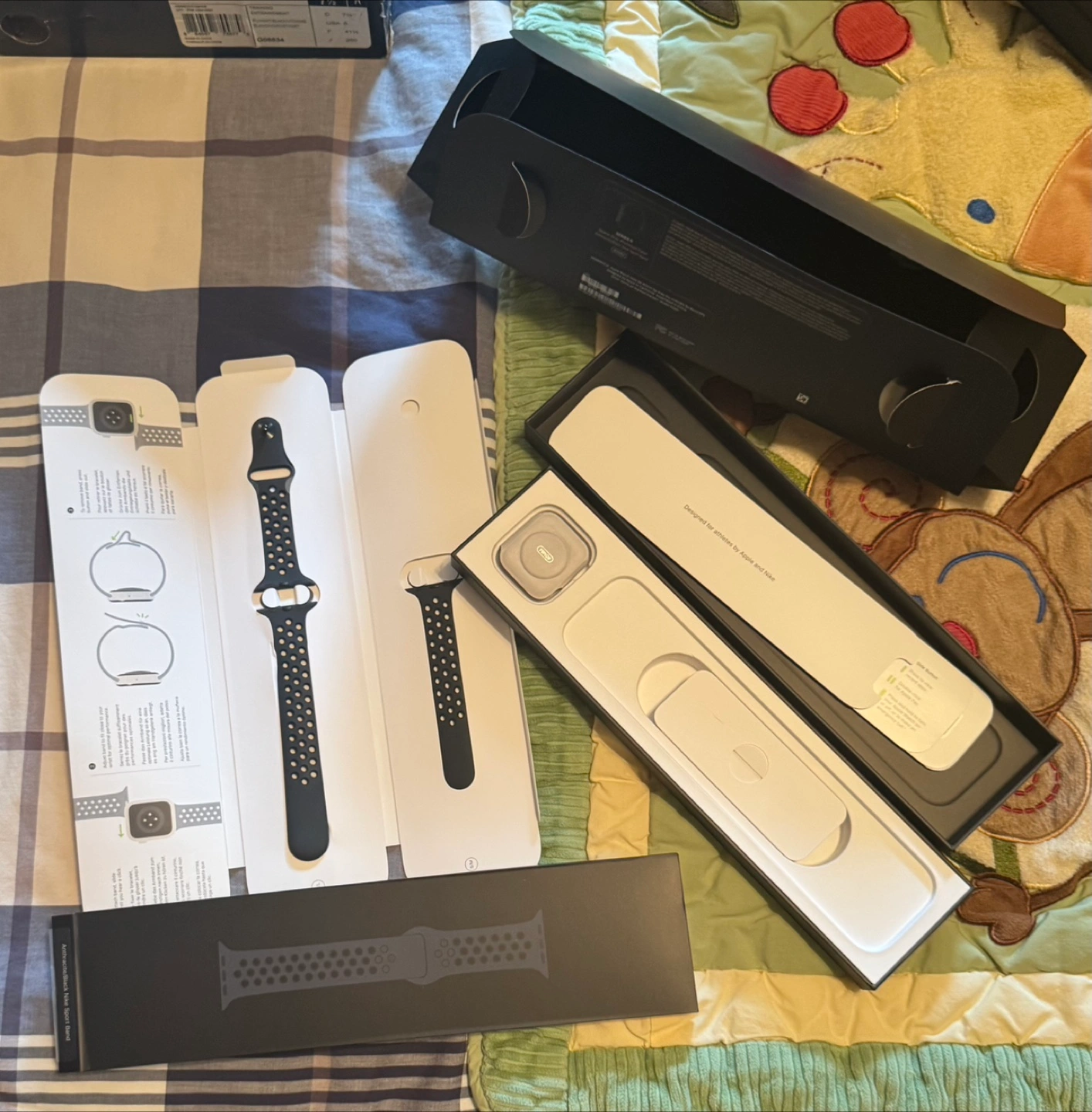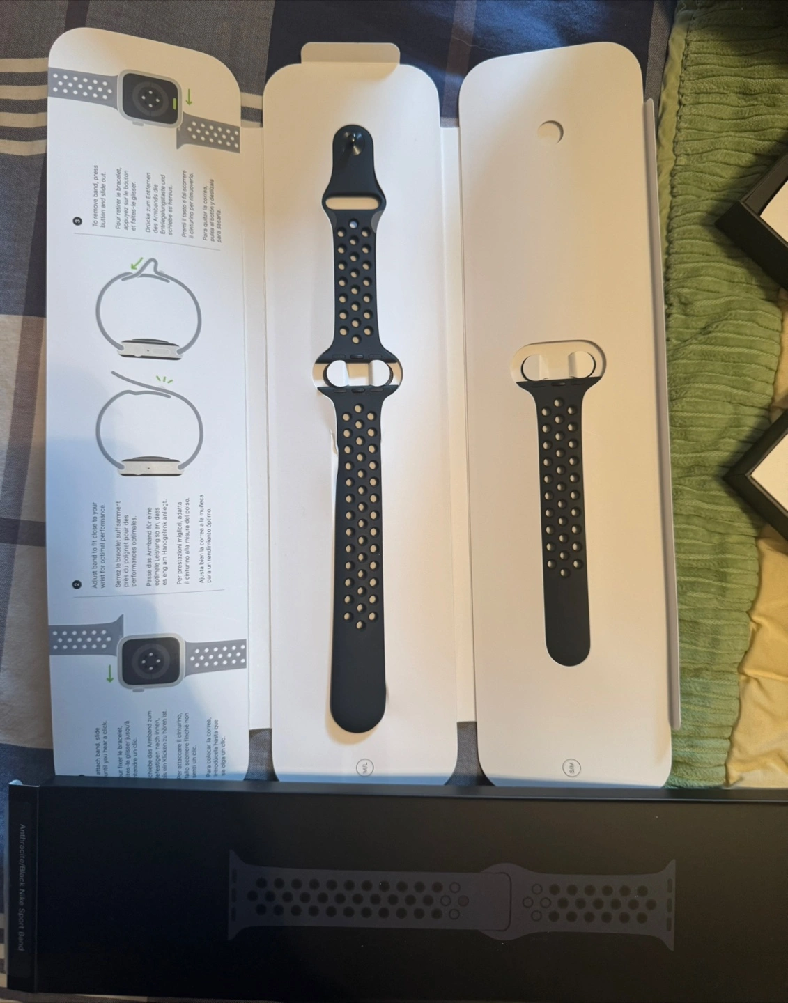 Selling a brand new Apple Watch Nike Sport Band. It comes with the box and all original packaging. The band is black with a perforated design, perfect for workouts or everyday wear. Get that sporty look for your Apple Watch!