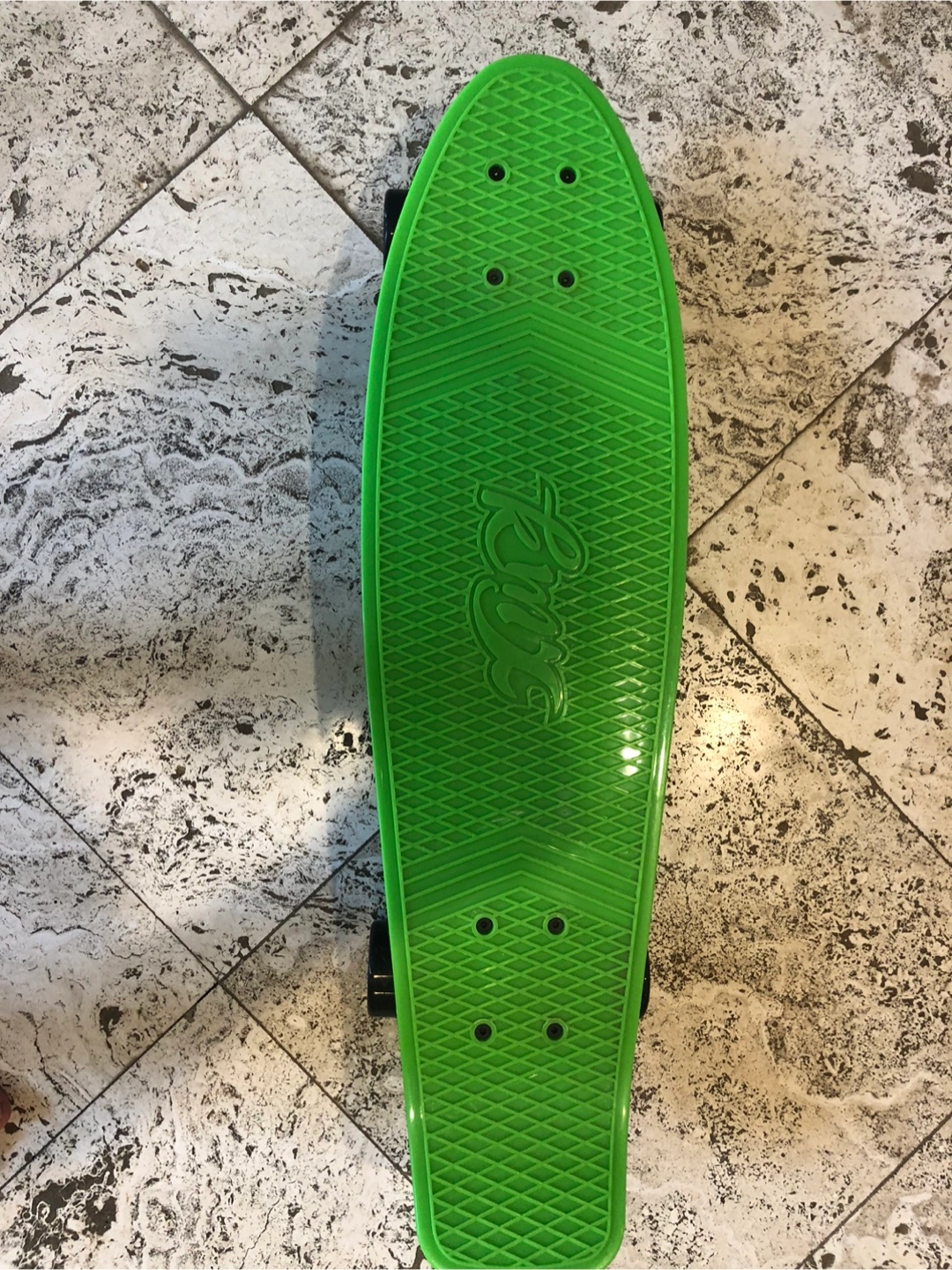 15FINAL PRICE/Selling a KMX nickelboard skateboard in a vibrant green colour! It comes with a handy carrying bag and the necessary tool for adjustments. Perfect for cruising around town! Bought new for $75